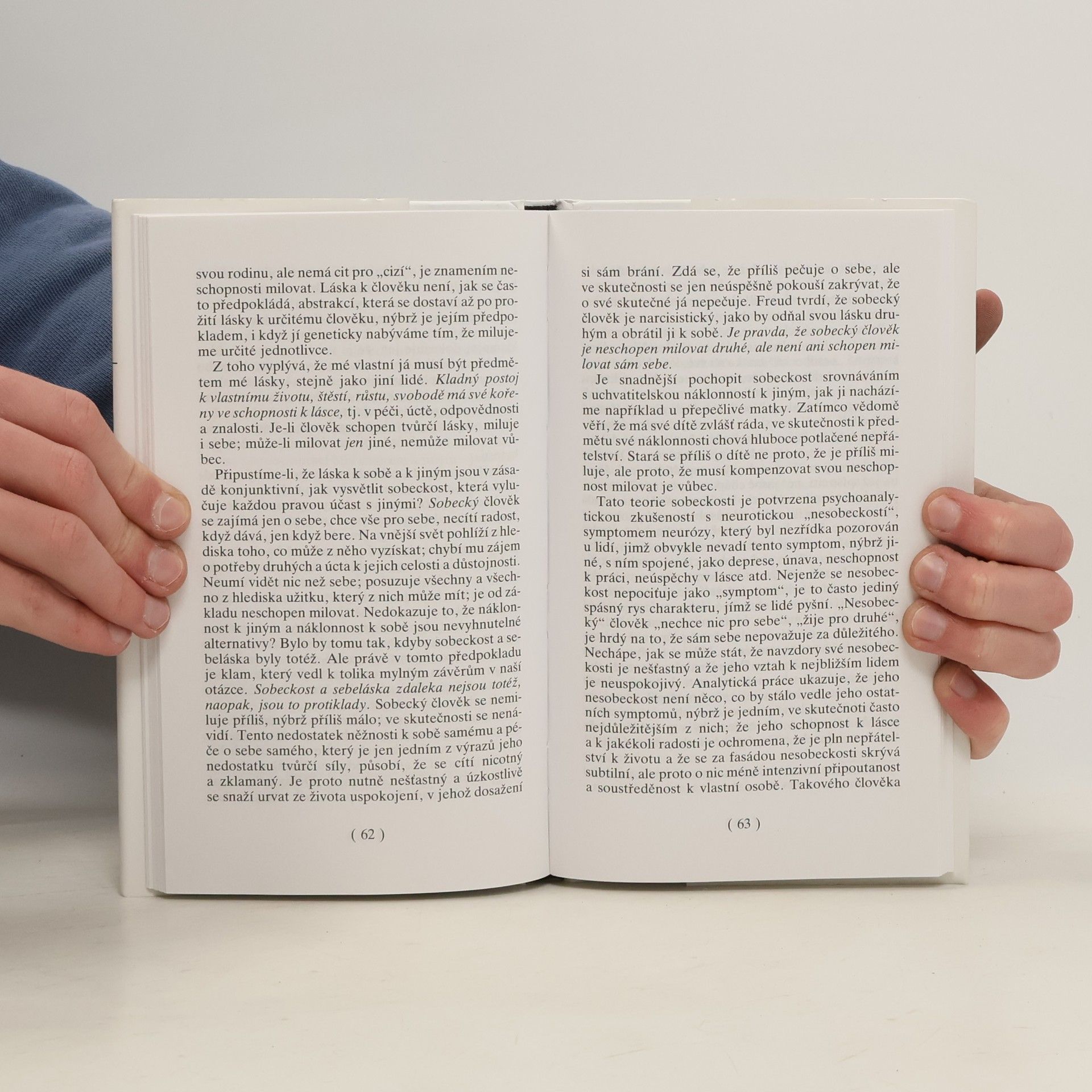 Kniha o lásce – bratrské, mateřské, erotické, o sebelásce, o lásce mezi rodiči a dětmi, o lásce k Bohu... Z úvodu E. Fromma: „...najít uspokojení v individuální lásce je nemožné bez schopnosti milovat svého bližního, bez skutečné pokory, odvahy, víry a kázně.“