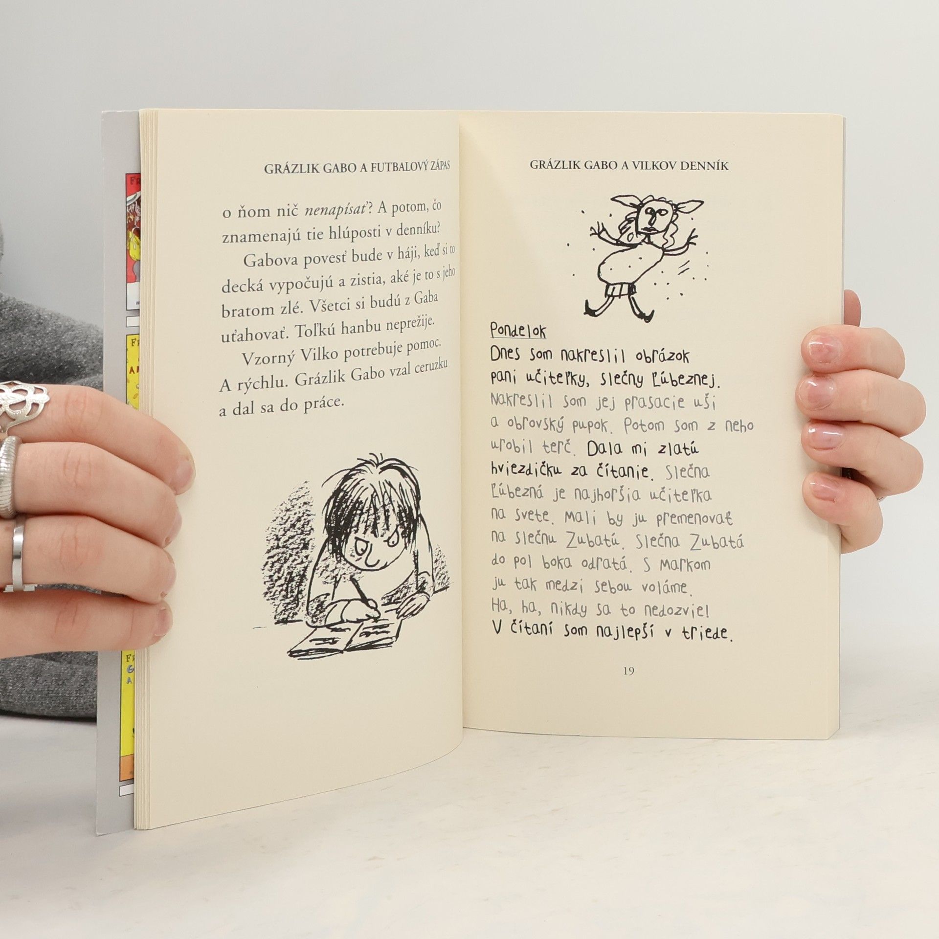 Tak čo vyvedie Grázlik Gabo tentoraz? Učiteľský zbor unesú ufóni, Gabo strávi celý deň s chrumkami pred telkou, dostane nový komiks a vyššie vreckové, potupí Náladovú Naďu alebo Vilka? Nie! Teda, nie celkom. Grázlik Gabo si prečíta Vilkov denník, postaví sa svojmu úhlavnému nepriateľovi, zahrá si futbal a - beda! - nezmestí sa do nohavíc, trička a aj topánky ho akosi tlačia: Grázlik Gabo musí ísť nakupovať! Je to také nespravodlivé!