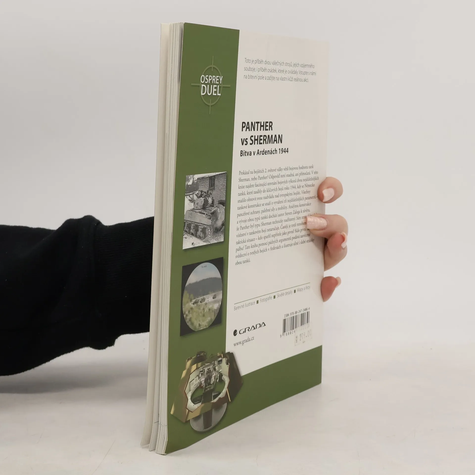 Otázka, zda měl na bojištích 2. světové války větší bojovou hodnotu tank Sherman, nebo Panther, zaměstnává vojenské historiky již celá desetiletí. Autor této knihy se rovněž snaží nalézt pravdivou odpověď a opírá se nejen o technické údaje o jednotlivých typech, ale nahlíží také do operačních záznamů, které jsou méně známé. A zjišťuje, že souboj mezi tanky Sherman a Panther předem daného vítěze v podobě německého stroje neměl, že technická nadřazenost nemusí automaticky znamenat úspěch na bojišti. Mnohem důležitější bývají jiné faktory - kvalita a výcvik osádek, taktika a podmínky na bojišti. Cílem této knihy, která proti sobě staví americký střední tank M4A3 Sherman (vyzbrojený kanonem ráže 76 mm ) a německý tank Panther Ausf. G, je popsat jejich vzájemný střet právě z tohoto pohledu.