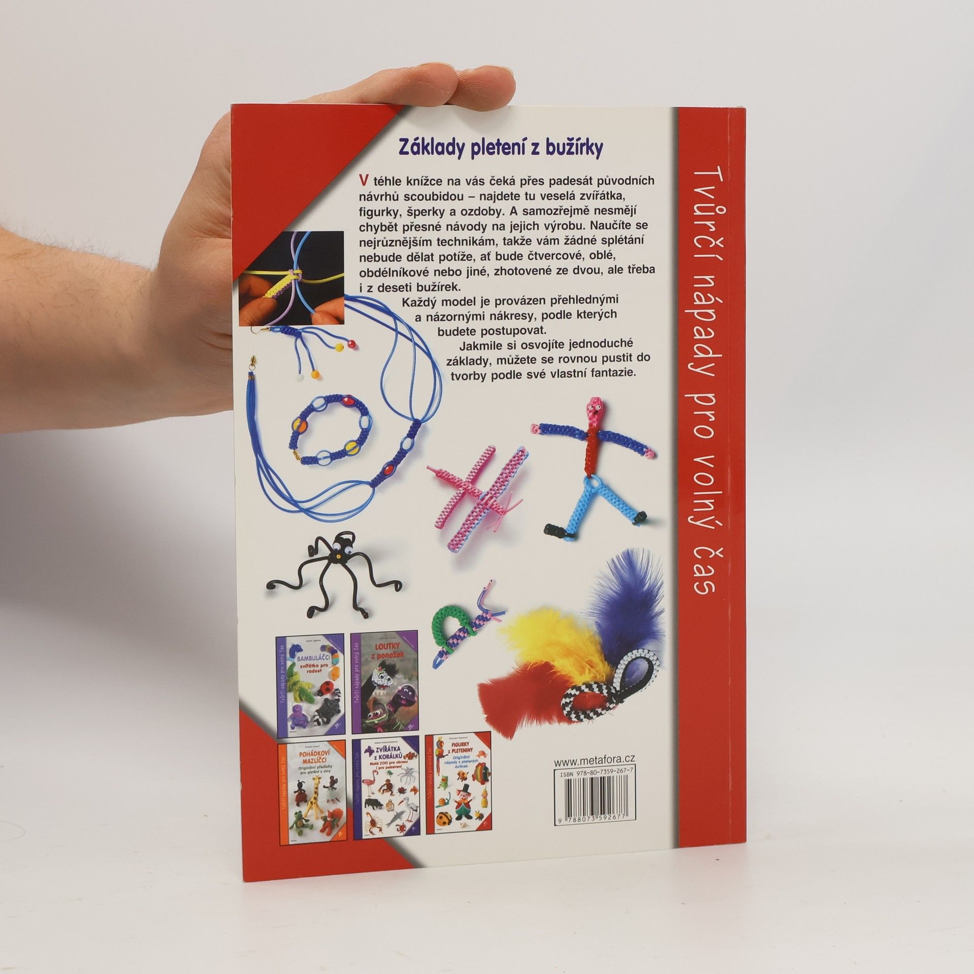 Pojďme si hrát a vytvářet z tak obyčejného materiálu, jako je bužírka, neobyčejné věci. 55 originálních vzorů. V téhle knížce na vás čeká přes padesát původních návrhů scoubidou – najdete tu veselá zvířátka, figurky i šperky a ozdoby. A samozřejmě nesmějí chybět přesné návody na jejich výrobu. Naučíte se nejrůznějším technikám, takže vám žádné splétání nebude dělat potíže, ať bude čtvercové, oblé, obdélníkové nebo jiné, zhotovené ze dvou, ale třeba i z deseti bužírek. Každý model je provázen přehlednými a názornými nákresy, podle kterých budete krok za krokem postupovat. Jakmile si osvojíte jednoduché základy, můžete se rovnou pustit do tvorby podle své vlastní fantazie.