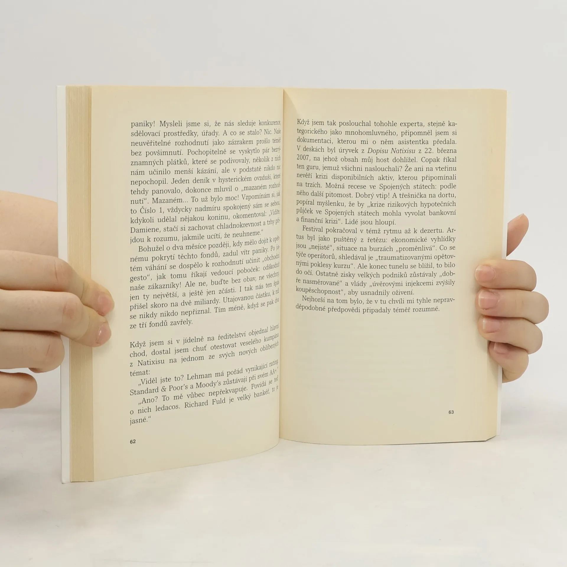 Dějová linka knihy, jejíž autor se skrývá za pseudonymem, se soustředí na druhého nejvyššího představitele blíže nejmenované banky, který na základě informací od své call girl a svých kontaktů odhalí blížící se finanční krach. Využije své analytické schopnosti a znalosti k nezákonnému obohacení. Hlavním přínosem knihy je srozumitelný popis praktik vysokých financí, včetně mezinárodního boje o bankovní tajemství, finančních operací podobných ruletě, metod investování a konkurence mezi bankami. Autor detailně vykresluje triky tohoto uzavřeného a mocného světa. Zajímavé jsou i portréty jednotlivých finančníků a jejich soukromých životů, které přispívají k celkovému obrazu oboru. Děj se odehrává těsně před krachem na burze v roce 2008 a pádem Lehman Brothers, což vytváří hrozivý kontext. Autor používá skutečná jména, což zvyšuje důvěryhodnost textu. Jazyk je věcný a přesný, styl nesentimentální a cynický, což dokonale odpovídá tématu a záměru.