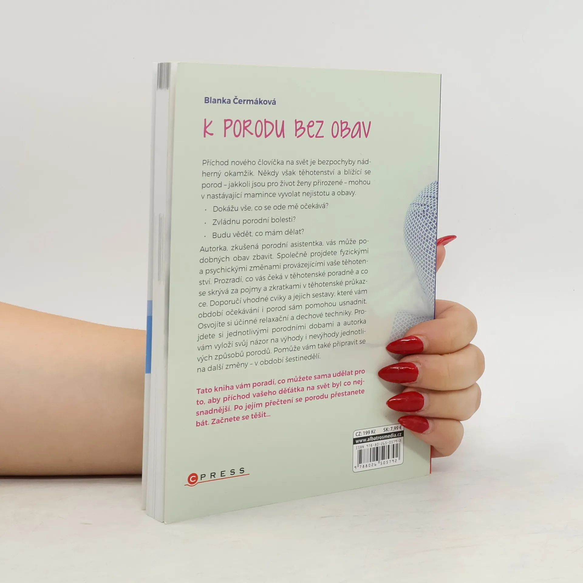 Po přečtení knížky se porodu přestanete bát. Začnete se těšit... Příchod nového človíčka na svět je bezpochyby nádherný okamžik. Někdy však těhotenství a blížící se porod – jakkoli jsou pro život ženy přirozené – mohou u nastávající maminky vyvolat nejistotu a obavy. Dokážu vše, co se ode mě očekává? Zvládnu porodní bolesti? Budu vědět, co mám dělat? Autorka, zkušená porodní asistentka, vás může podobných obav zbavit. Laskavým způsobem vám předá své zkušenosti, které vám pomohou připravit se na příchod vašeho potomka tak, že si porod mnohem lépe užijete.