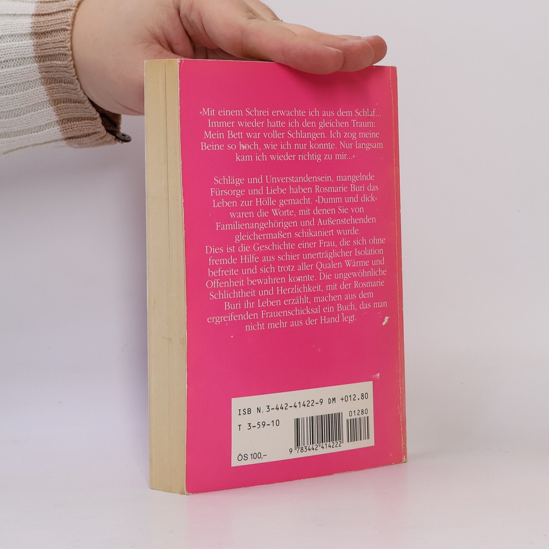 Schläge und Unverstandensein, mangelnde Fürsorge und Liebe haben Rosemarie Buri das Leben zur Hölle gemacht. "Dumm und dick" waren die Worte, mit denen Sie von Familienangehörigen und Aussenstehenden gleichermassen schikaniert wurde. Dies ist die Geschichte einer Frau, die sich ohne fremde Hilfe aus schier unerträglicher Isolation befreite und sich trotz aller Qualen Wärme und Offenheit bewahren konnte. Die ungewöhnliche Schlichtheit und Herzlichkeit, mit der Rosemarie Buri ihr Leben erzählt, machen aus dem ergreifenden Frauenschicksal ein Buch, das man nicht mehr aus der Hand legt.