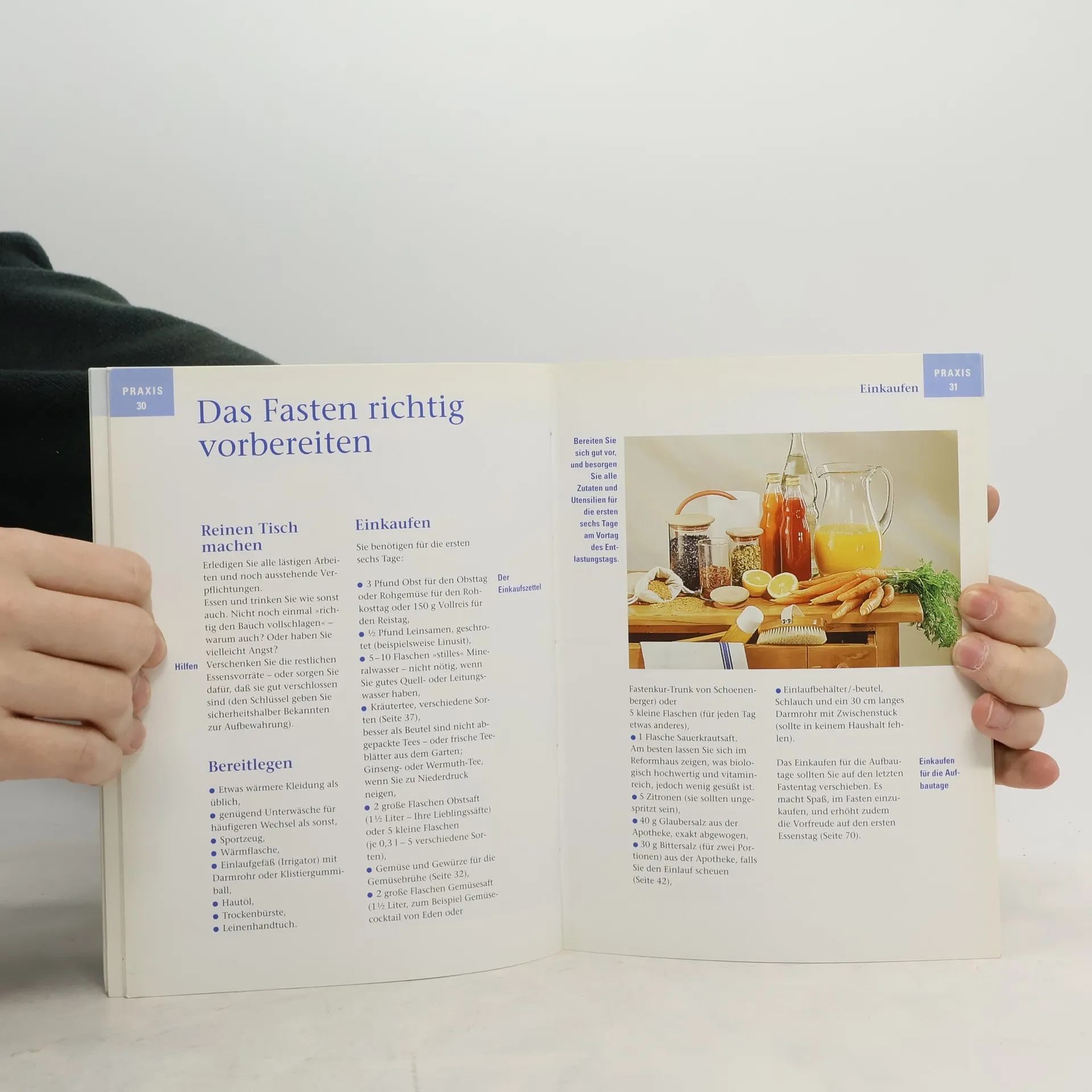 Der Ratgeber beschreibt eine Fastenwoche mit meditativen Elementen sowie die Nachfastenzeit.