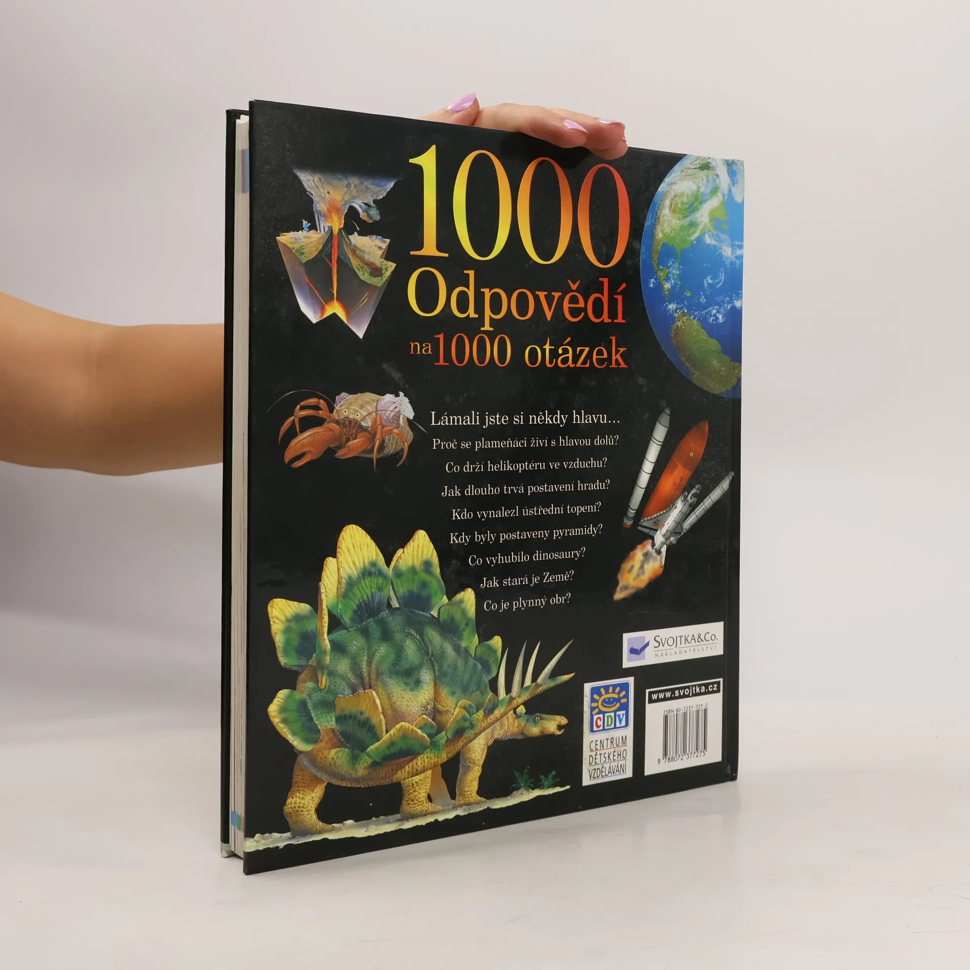 Ilustrovaný lexikon, ve kterém dostanete na tisíc otázek z různých oborů lidské činnosti tisíc odpovědí. Publikace je rozdělena podle jednotlivých témat (Hvězdy a planety, Planeta Země, Dinosauři, Dávné civilizace, Rytíři a hrady, Vynálezy, Doprava). Každá jednotlivá kapitola (obor) má na začátku obsah a je rozdělena do menších podkapitol (Doprava - Starověká doprava, Automobily, Závodní vozy, Nákladní vozy, ...). Jednotlivá hesla jsou podána formou otázky a odpověďi. Na každé dvoustránce je malý rychlokvíz. Na konci jednotlivých kapitol je shrnutí užitečných faktů a řešení rychlokvízů. Kniha je doplněna názornými ilustracemi a rejstříkem.