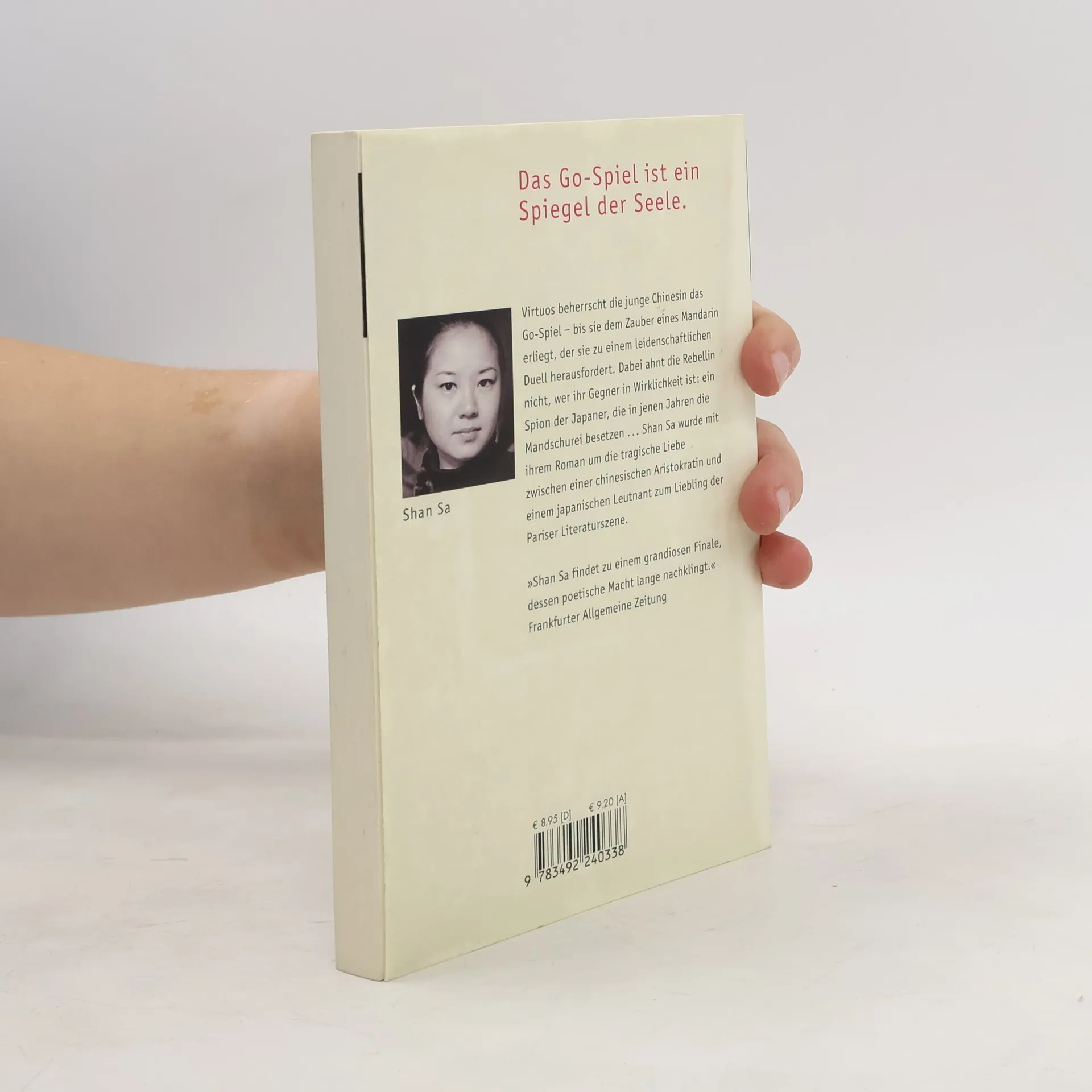 Virtuos beherrscht die junge Chinesin das Go-Spiel - bis sie dem Zauber eines Mandarin erliegt, der sie zu einem leidenschaftlichen Duell herausfordert. Dabei ahnt die Rebellin nicht, wer ihr Gegner in Wirklichkeit ist: ein Spion der Japaner, die in jenen Jahren die Mandschurei besetzen. Shan Sa wurde mit ihrem Roman um die tragische Liebe zwischen einer chinesischen Aristokratin und einem japanischen Leutnant zum Liebling der Pariser Literaturszene.