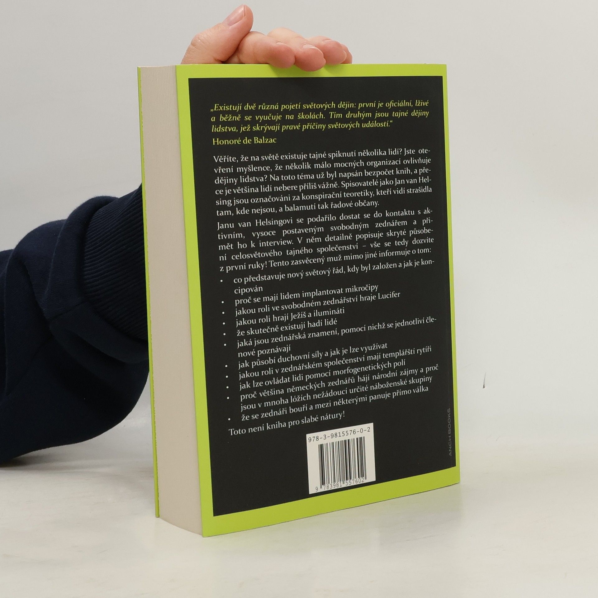 Věříte, že na světě existuje tajné spiknutí několika lidí? Jste otevření myšlence, že několik málo mocných organizací ovlivňuje dějiny lidstva? Na toto téma už byl napsán bezpočet knih, a přece je většina lidí nebere příliš vážně. Spisovatelé jako Jan van Helsing jsou označováni za konspirační teoretiky, kteří vidí strašidla tam, kde nejsou, a balamutí tak řadové občany. Janu van Helsingovi se podařilo dostat do kontaktu s aktivním, vysoce postaveným svobodným zednářem a přimět ho k interview. V něm detailně popisuje skryté působení celosvětového tajného společenství – vše se tedy dozvíte z první ruky! Tento zasvěcený muž mimo jiné informuje o tom: – co představuje nový světový řád, kdy byl založen a jak je koncipován – proč se mají lidem implantovat mikročipy – proč se má v budoucnu masivně snížit počet lidí – že člověk nepochází z opice – jakou roli hrají Ježíš a ilumináti – že skutečně existují hadí lidé – jaká jsou zednářská znamení, pomocí nichž se jednotliví členové poznávají – jak působí duchovní síly a jak je lze využívat – jakou roli v rámci zednářského společenství zastávají templářští rytíři – jak lze ovládat lidi pomocí morfogenetických polí – proč většina německých zednářů hájí národní zájmy a proč jsou v mnoha lóžích nežádoucí určité náboženské skupiny – že se zednáři bouří a mezi některými panuje přímo válka Toto není kniha pro slabé nátury!