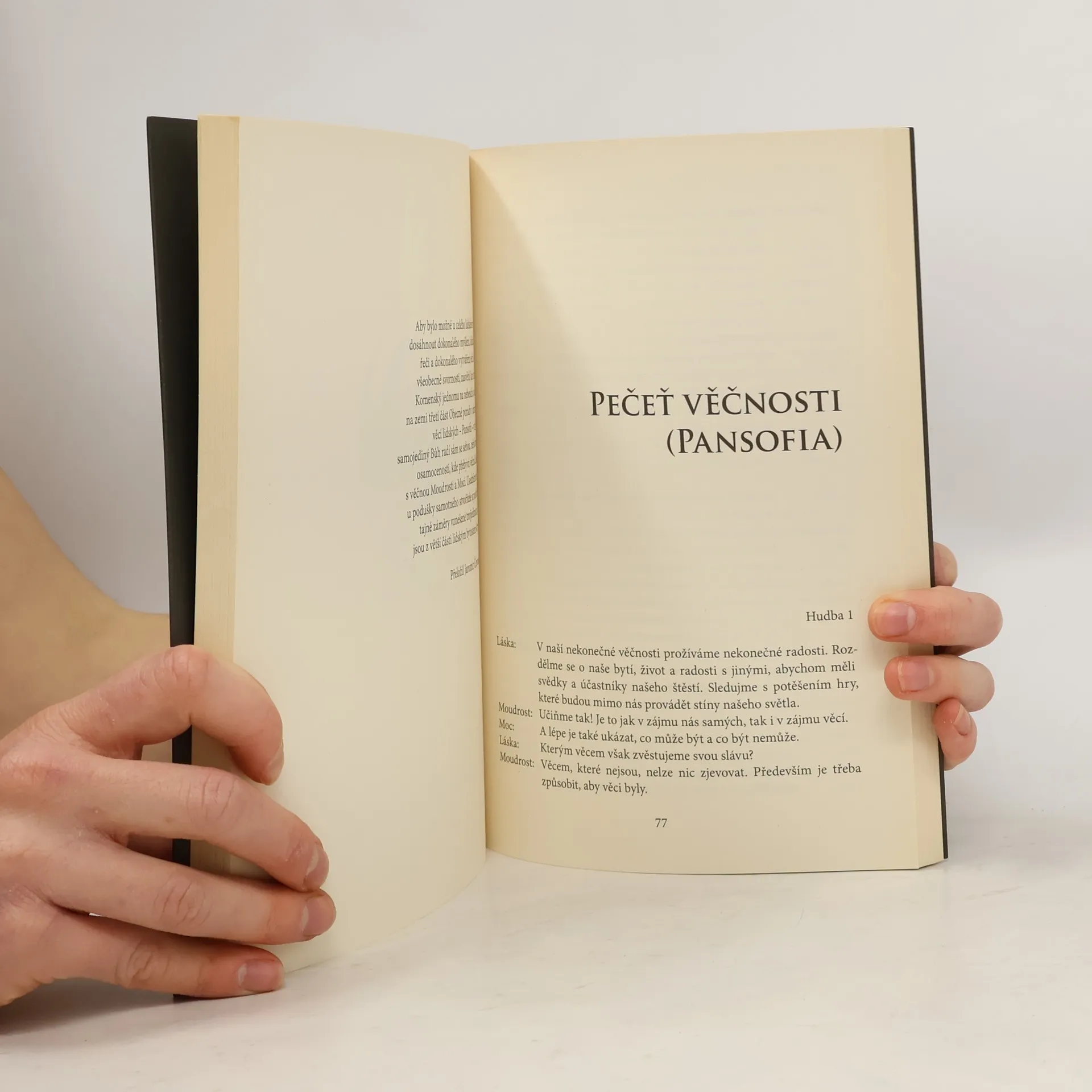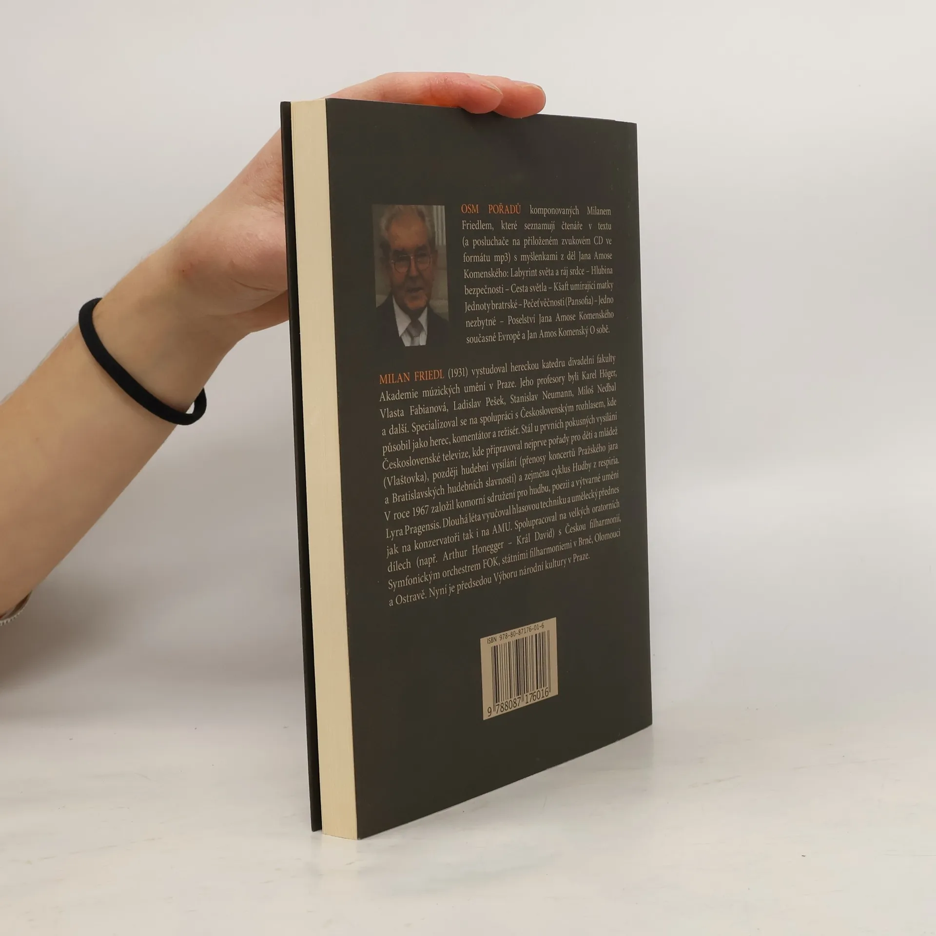 Osm pořadů komponovaných Milanem Friedlem, které seznamují čtenáře v textu (a posluchače na přiloženém zvukovém cd ve formátu mp3) s myšlenkami z děl Jana Amose Komenského: Labyrint světa a ráj srdce Hlubina bezpečnosti Cesta světla Kšaft umírající matky Jednoty bratrské Pečeť věčnosti (Pansofia) Jedno nezbytné Poselství Jana Amose Komenského současné Evropě a Jan Amos Komenský O sobě. Součástí knihy je audio cd ve formátu mp3 s namluvenými texty, kterým propůjčili hlas Gabriela Filippi, Otakar Brousek, Milan Friedl, Rudolf Pellar, Alfred Strejček a Jiří Zapletal. Namluvené texty doprovází varhanní variace Petra Tvrdka. Celková délka nahrávek přesahuje sedm hodin mluveného textu.