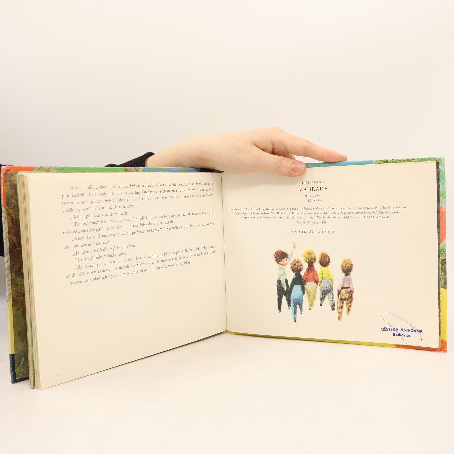 Zahrada Jiřího Trnky patří mezi díla, která léta oslovují děti i dospělé. Má své kouzlo, poezii i humor. Pohádku Trnka nejen ilustroval, ale sám i napsal. Pět kluků otevře starou rozvrzanou branku a vejdou do krásné, tajemné zahrady, kde potkají kamenného trpaslíka, zlomyslného kocoura, učenou velrybu, pět slonů, a odhalují rozličná tajemství. Kouzelný příběh, který známe i z filmového zpracování, je nezapomenutelný.