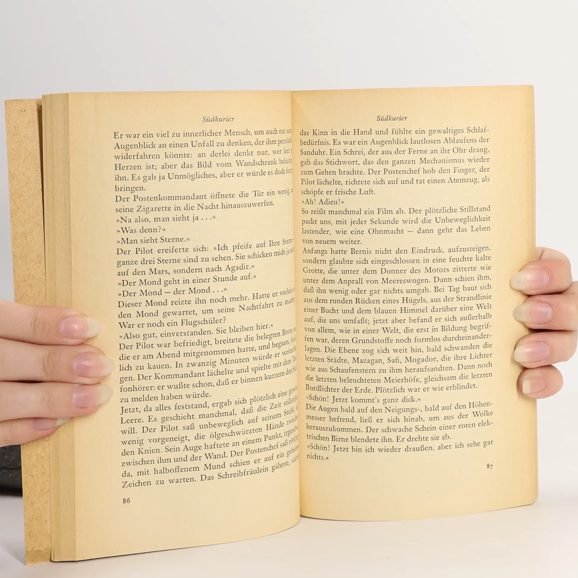 In die Erinnerungen an einen Freund und an dessen letzten Flug hat der Erzähler die Geschichte einer Liebe eingebunden, die sich nicht erfüllen kann. (Orig. Ausg.: 1929).