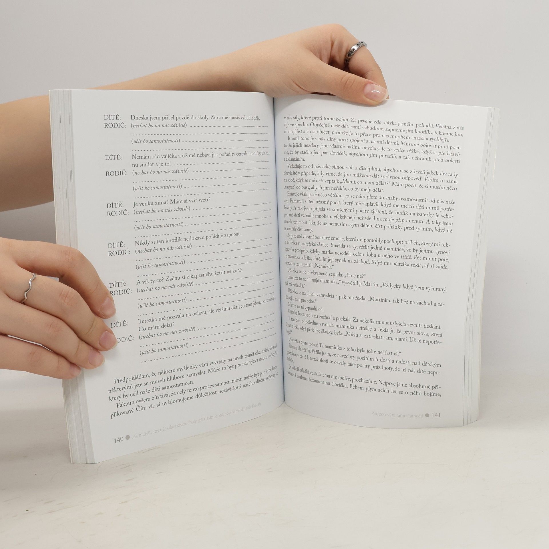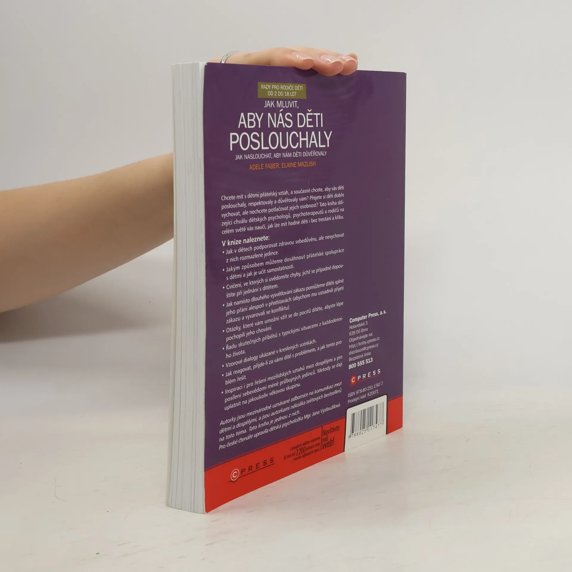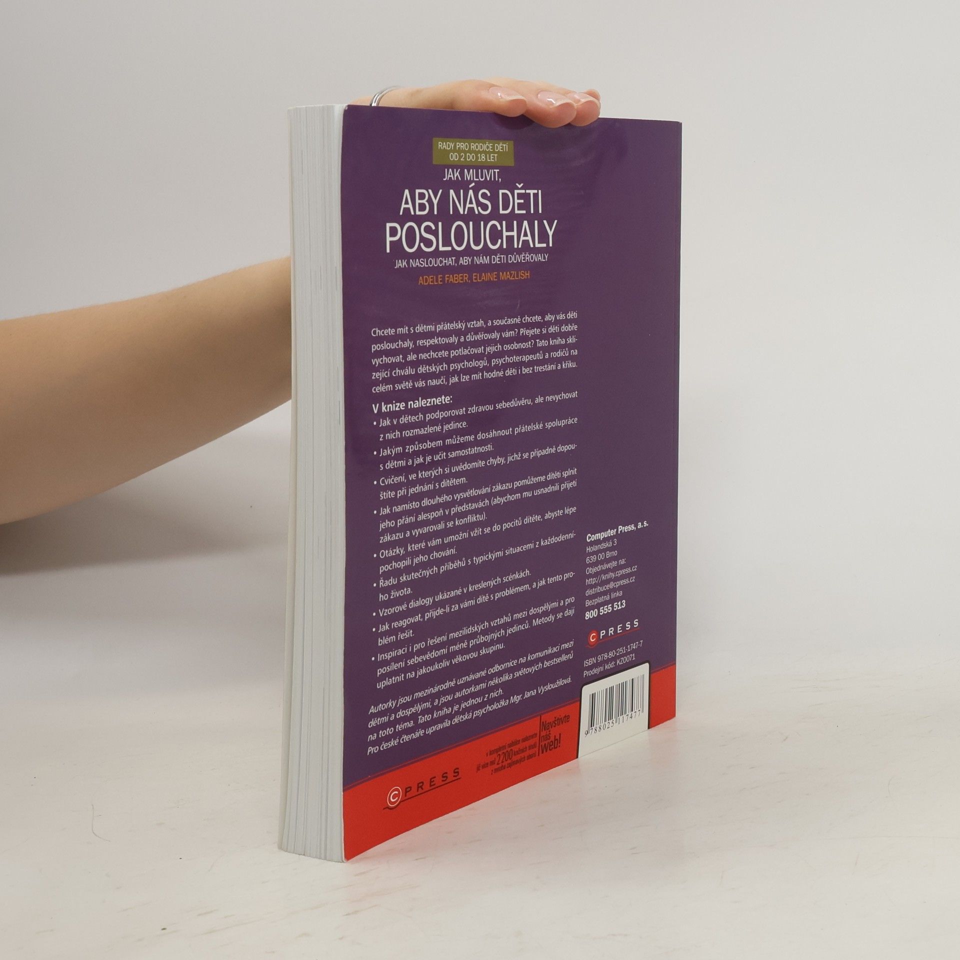 S podtitulem: Jak naslouchat, aby nám děti důvěřovaly. Chcete mít s dětmi přátelský vztah, a současně chcete, aby vás děti poslouchaly, respektovaly a důvěřovaly vám? Přejete si děti dobře vychovat, ale nechcete potlačovat jejich osobnost? Tato kniha sklízející chválu dětských psychologů, psychoterapeutů a rodičů na celém světě vás naučí, jak lze mít hodné děti i bez trestání a křiku. V knize naleznete: • Jak v dětech podporovat zdravou sebedůvěru, ale nevychovat z nich rozmazlené jedince. • Jakým způsobem můžeme dosáhnout přátelské spolupráce s dětmi a jak je učit samostatnosti. • Cvičení, ve kterých si uvědomíte chyby, jichž se případně dopouštíte při jednání s dítětem. • Jak namísto dlouhého vysvětlování zákazu pomůžeme dítěti splnit jeho přání alespoň v představách (abychom mu usnadnili přijetí zákazu a vyvarovali se konfliktu). • Otázky, které vám umožní vžít se do pocitů dítěte, abyste lépe pochopili jeho chování. • Řadu skutečných příběhů s typickými situacemi z každodenního života. • Vzorové dialogy ukázané v kreslených scénkách • Jak reagovat, přijde-li za vámi dítě s problémem, a jak tento problém řešit. • Inspiraci i pro řešení mezilidských vztahů mezi dospělými a pro posílení sebevědomí méně průbojných jedinců. Metody se dají uplatnit na jakoukoliv věkovou skupinu.