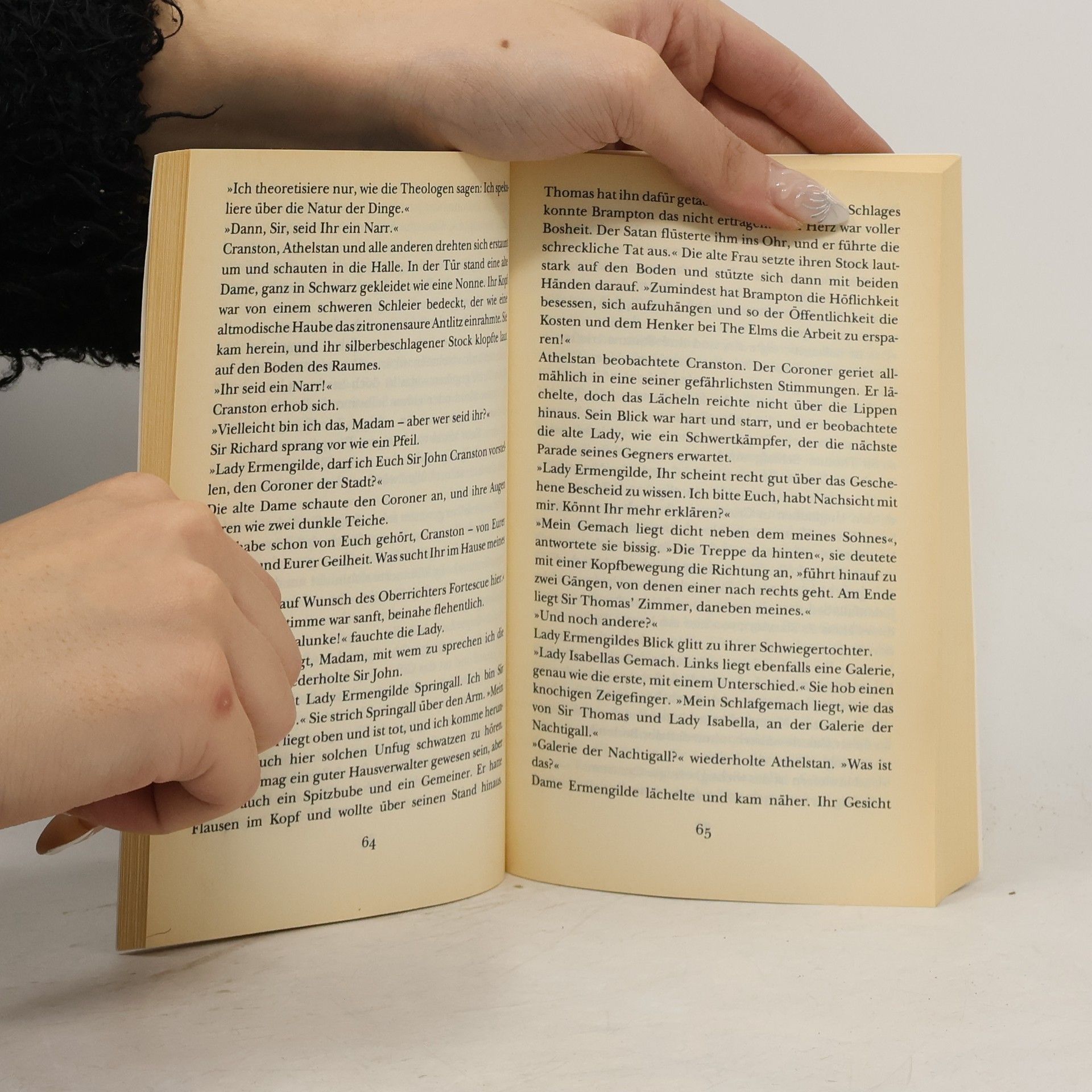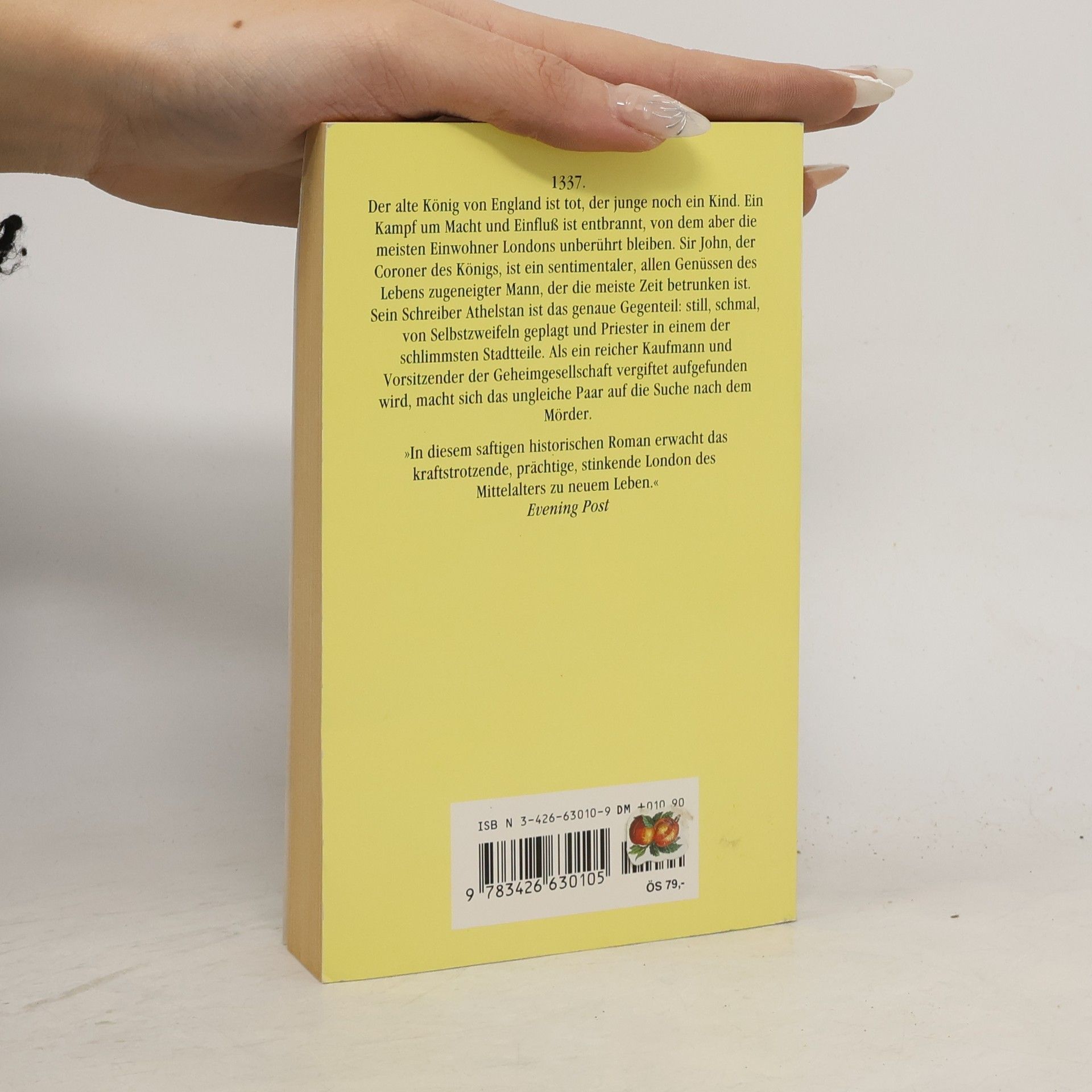 London im Jahre 1377: Als ein reicher Kaufmann tot in seinem Schlafzimmer aufgefunden wird, muss natürlich der Coroner den merkwürdigen Todesumständen auf den Grund gehen. Cranston, der dauernd betrunken ist, wirkt auf den ersten Blick dumm und leicht zu übertölpeln, doch in Wahrheit ist sein Verstand so scharf wie sein Schwert. Zusammen mit dem ihm zugeteilten Sekretär Bruder Athelstan begibt er sich auf die Suche nach des Rätsels Lösung …