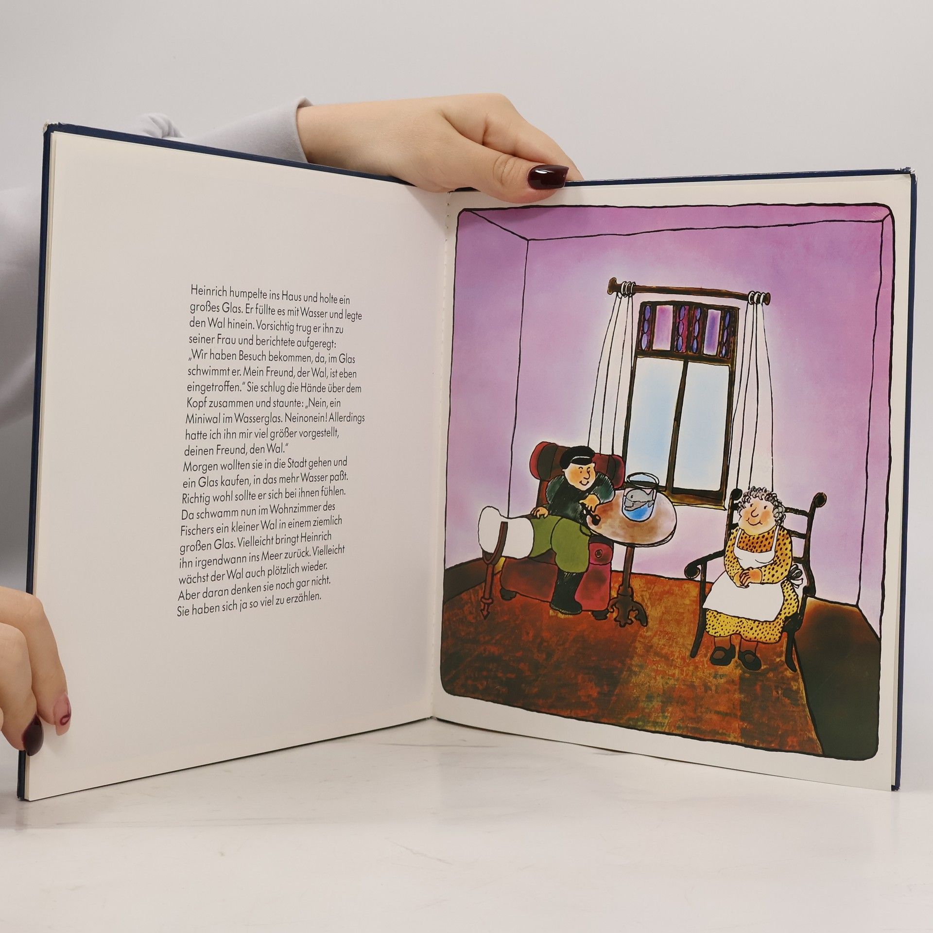 Humorvolle Geschichten vom Fischer Heinrich und seiner Frau Rosine, die einen Wal zum Freund haben. Bilder: G. Kalow. (ab 5).