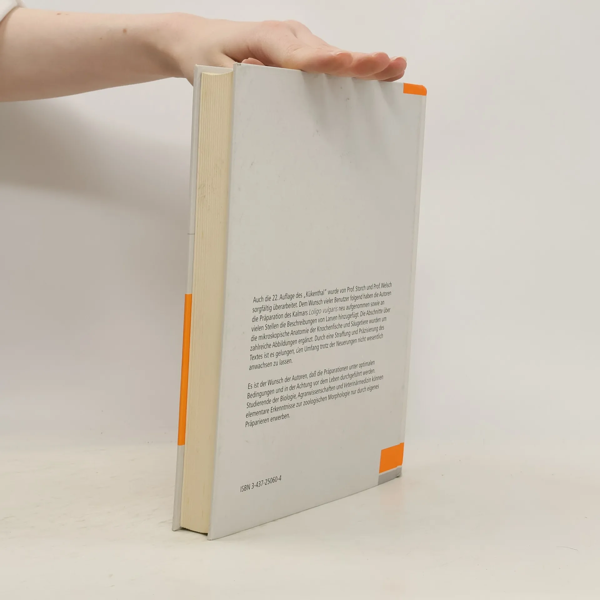 Die 23. Auflage des KÜKENTHAL wurde von Professor V. Storch und Professor U. Welsch gründlich überarbeitet und gestrafft. Besonderes Gewicht wurde dabei auf funktionelle und biologische Bezüge gelegt. Etwa 30 neue und aussagekräftige Abbildungen wurden angefertigt, ebensoviele herausgenommen. Das neue zweifarbige Layout erleichtert die Orientierung im Text sowie die Unterscheidung zwischen Versuchsanleitungen und wissenschaftlichen Fakten. Dem Wunsch vieler Benutzer folgend wurde der Kurs über Blatta orientalis durch einen über Periplaneta americana ersetzt. Außerdem wurde das Neunauge ( Lampetra ) als wichtiges Untersuchungsobjekt hinzugefügt. Wie für alle verantwortlich denkenden Biologen selbstverständlich ist es ein Grundanliegen der Autoren, daß die Präparation der Tiere sachgerecht, sorgfältig und in Achtung vor der Schöpfung erfolgt. Studierende der Biologie, Agrarwissenschaften und Veterinärmedizin können elementare Erkenntnisse zur Morphologie eben nur durch eigene Erfahrung im zoologischen Praktikum erwerben.