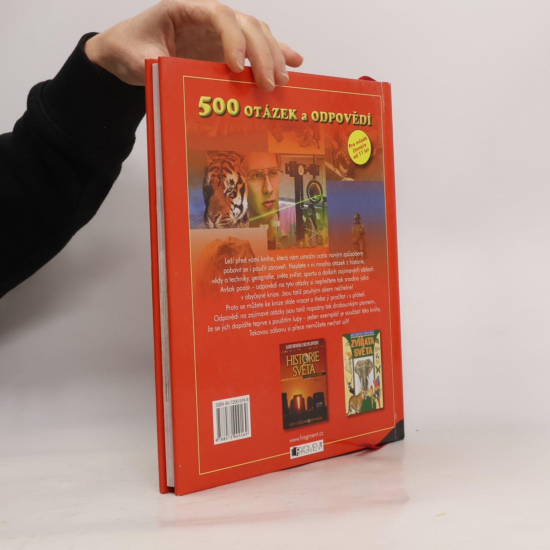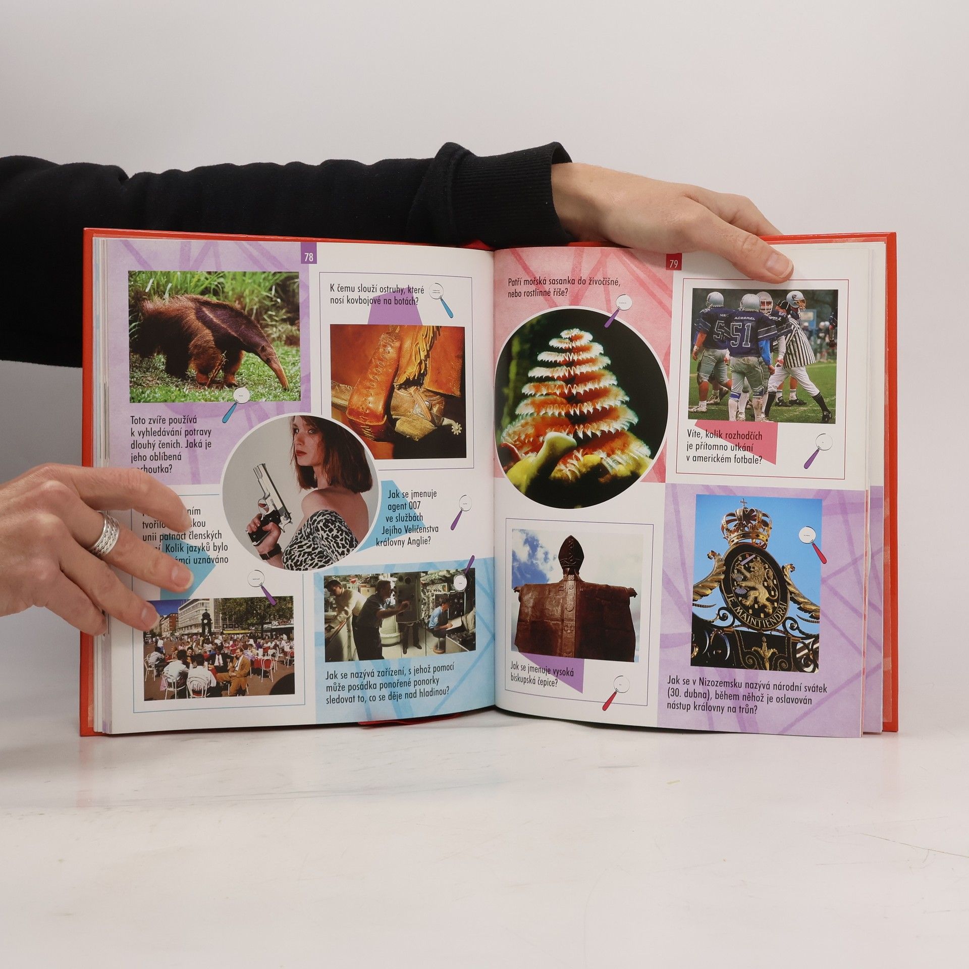Pokuste se odpovědět na otázky z nejrůznějších oborů lidské činnosti. Ověřte si své znalosti z oblasti historie, techniky, světa zvířat i rostlin, sportu aj. Pokud odpověď neznáte, nemusíte ji složitě hledat! Naleznete ji přímo pod otázkou. Je však vytištěna tak malým písmem, že ji lze přečíst jen pomocí speciální lupy, která je součástí každého výtisku.