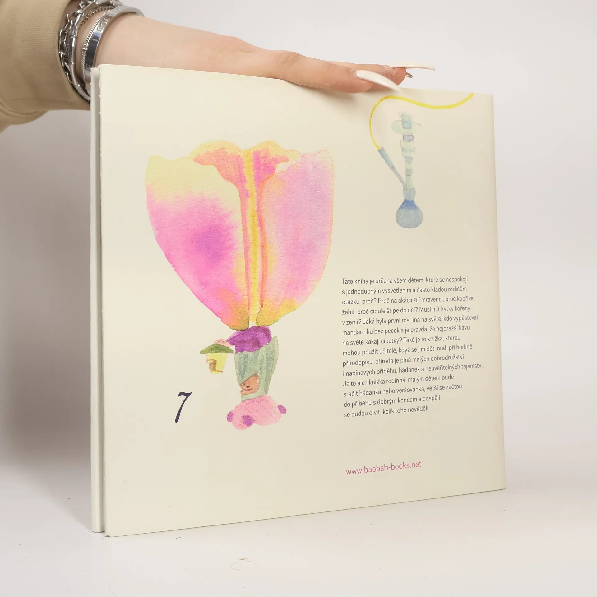 Tato kniha je určena všem dětem, které se nespokojí s jednoduchým vysvětlením a často kladou rodičům otázku proč. Proč na akátu žijí mravenci, proč kopřiva žahá, proč cibule štípe do očí a proč musí mít kytky kořeny v zemi? Jaká byla první rostlina na světě, kdo vypěstoval sladký hrášek a je pravda, že nejdražší kávu na světě kakají cibetky? Rostlinopis v podání Jiřího Dvořáka a Alžběty Skálové mohou také použít učitelé, když se děti při vyučování přírodopisu nudí: příroda je plná malých napínavých dobrodružství i hrdinných příběhů, hádanek a neuvěřitelných tajemství. A v neposlední řadě je to i knížka rodinná: malým dětem bude stačit hádanka nebo veršovánka, větší děti se začtou do příběhu s dobrým koncem a dospělí se budou divit, kolik toho nevěděli.