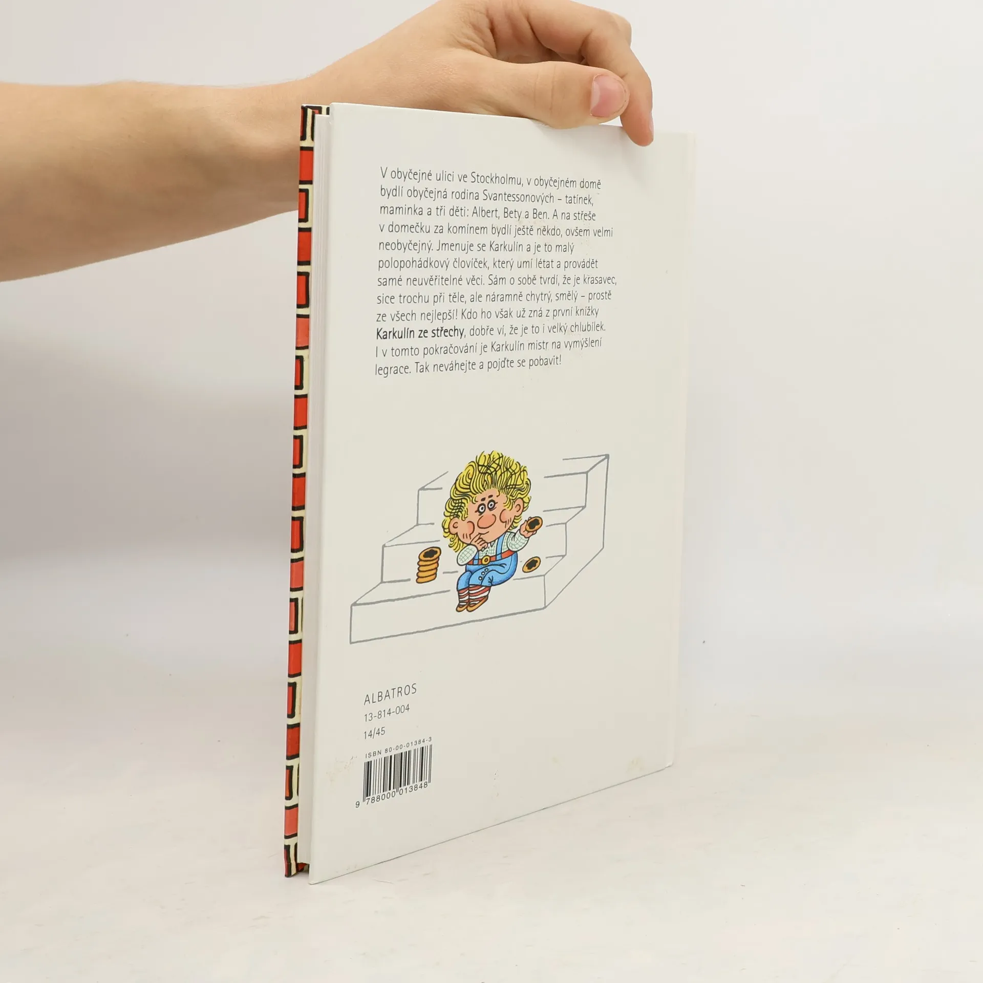 V obyčejné ulici ve Stockholmu, v obyčejném domě bydlí obyčejná rodina Svantessonových – tatínek, maminka a tři děti Albert, Bety a Ben. A na střeše v domečku za komínem bydlí ještě někdo, ovšem velmi neobyčejný. Jmenuje se Karkulín a je to malý polopohádkový človíček, který umí létat a provádět samé neuvěřitelné věci. I v této knížce je Karkulín mistr ve vymýšlení legrace. Pro děti od 6 let.