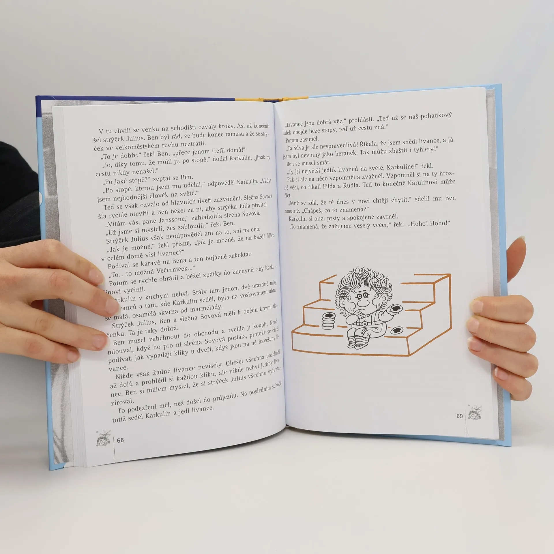 Veselý příběh o polopohádkovém človíčkovi, který umí létat, provádět neobyčejné věci a vymýšlet různé legrácky. Příběh pro malé i velké čtenáře od oblíbené Astrid Lindgrenové. V obyčejné ulici ve Stockholmu, v obyčejném domě bydlí obyčejná rodina Svantessonových – tatínek, maminka a tři děti Albert, Bety a Ben. A na střeše v domečku za komínem bydlí ještě někdo, ovšem velmi neobyčejný. Jmenuje se Karkulín a je to malý polopohádkový človíček, který umí létat a provádět samé neuvěřitelné věci. Sám o sobě tvrdí, že je krasavec, sice trochu při těle, ale náramně chytrý a smělý – prostě ze všech nejlepší! Ale kdo ho zná už z první knížky Karkulín ze střechy, dobře ví, že tenhle velký chlubílek je i mistr na vymýšlení legrácek. Tak neváhejte a pojďte se s ním pobavit!