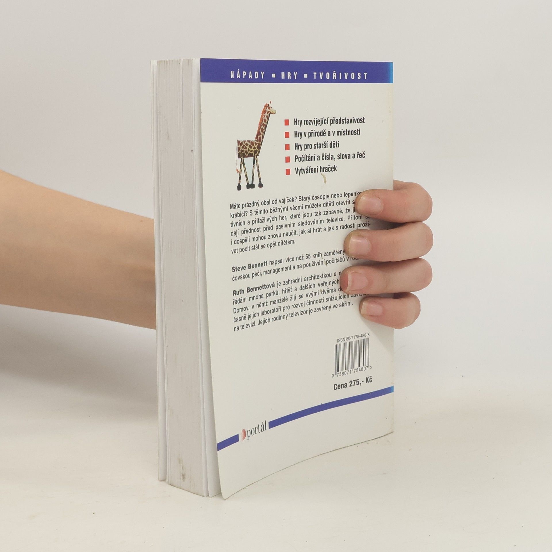 Hry rozvíjející představivost Hry v přírodě a v místnosti Nechte děti vyřádit Hry pro starší děti Počítání a čísla Slova a řeč Výroba hraček Potraviny a co s nimi Máte prázdný obal od vajíček? Starý časopis? Papírovou trubičku od toaletního papíru nebo lepenkovou krabici? S těmito běžnými věcmi můžete svému dítěti otevřít svět aktivních a přitažlivých her, které jsou tak zábavné, že jim děti dají přednost před pasivním sledováním televize. Přitom se i dospělí mohou znovu naučit, jak si hrát a jak s radostí prožívat nádherný pocit stát se opět dítětem.