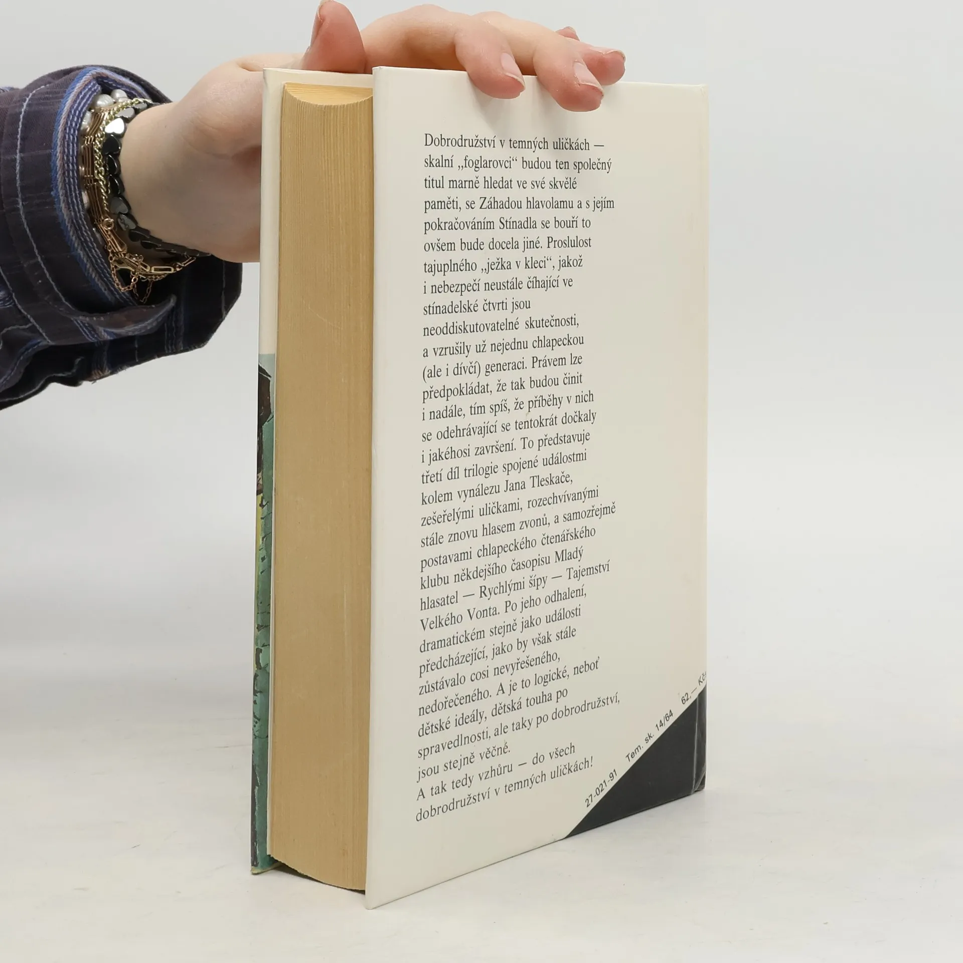 Dobrodružství v temných uličkách - skalní "foglarovci" budou ten společný titul marně hledat ve své skvělé paměti, se Záhadou hlavolamu a s jejím pokračováním Stínadla se bouří to ovšem bude docela jiné. Proslulost tajuplného "ježka v kleci", jakož i nebezpečí neustále číhající vestínadelské čtvrti jsou neoddiskutovatelné skutečnosti, a vzrušily už nejednu chlapeckou (ale i dívčí) generaci. Právem lze předpokládat, že tak budou činit i nadále, tím spíš, že příběhy v nich se odehrávající se tentokrát dočkaly i jakéhosi završení.To představuje třetí díl trilogie spojené událostmi kolem vynálezu Jana Tleskače, zešeřelými uličkami, rozechvívanými stále znovu hlasem zvonů, a samozřejmě postavami chlapeckého čtenářského klubu někdejšího časopisu Mladý hlasatel - Rychlými šípy - Tajemství Velkého Vonta. Po jeho odhalení, dramatickém stejně jako události předcházející, jako by však stále zůstávalo cosi nevyřešeného, nedořečeného. A je to logické, neboť dětské ideály, dětská touha po spravedlnosti, ale tady po dobrodružství, jsou stejně věčné. A tak tedy vzhůru - do vše dobrodružství v temných uličkách! 1/ Záhada hlavolamu 2/ Stínadla se bouří 3/ Tajemství Velké Vonta