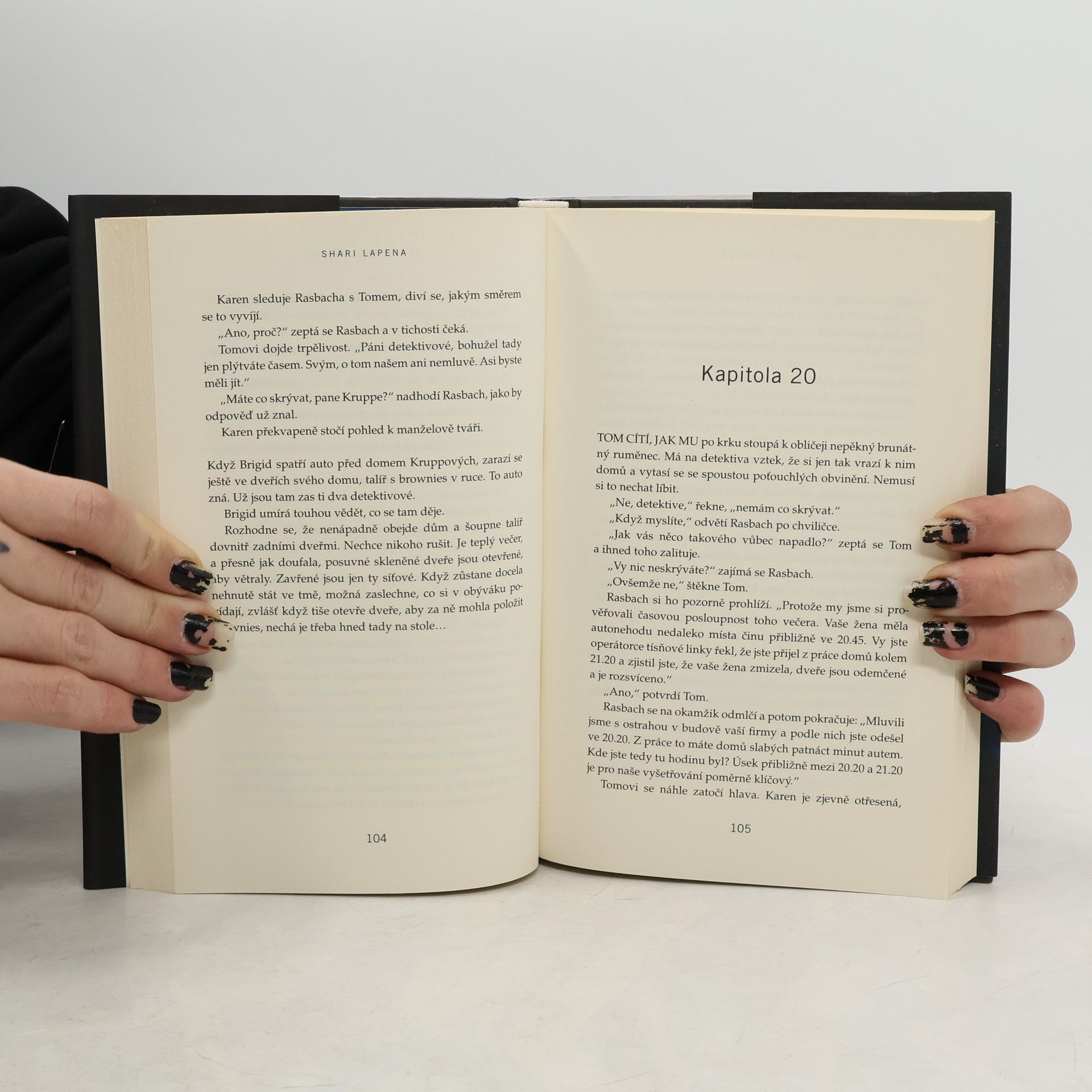 V téhle útulné čtvrti spokojených domovů zůstávají nebezpečné lži uzavřeny za dveřmi… Shari Lapena, autorka thrilleru roku 2017 Manželé odvedle, přichází s dalším rodinným dramatem plným tajemství a nečekaných zvratů, které nikdy nepřestanou překvapovat. Karen a Tom Kruppovi jsou šťastní – vzali se teprve nedávno a vlastní nádherný dům poblíž New Yorku. Jednoho dne se Tom vrátí domů a zjistí, že Karen zmizela – její auto je pryč a zdá se, že odjela ve spěchu. Nevzala si dokonce ani kabelku, telefon, doklady. Krátce nato se Tom dozví, že Karen měla nehodu a leží v nemocnici s otřesem mozku a ztrátou paměti. Po čase se Karen, odhodlaná vyléčit se a zapomenout, vrací s Tomem domů. Ale zdá se, že se tam něco změnilo. Něco není v pořádku. Někdo tam byl. Někdo cizí. Jenže v tomhle domě je každý cizí. Každý má něco, co by podle něj mělo zůstat skryto. Něco, kvůli čemu by raději vraždil, jen aby si to mohl nechat pro sebe...