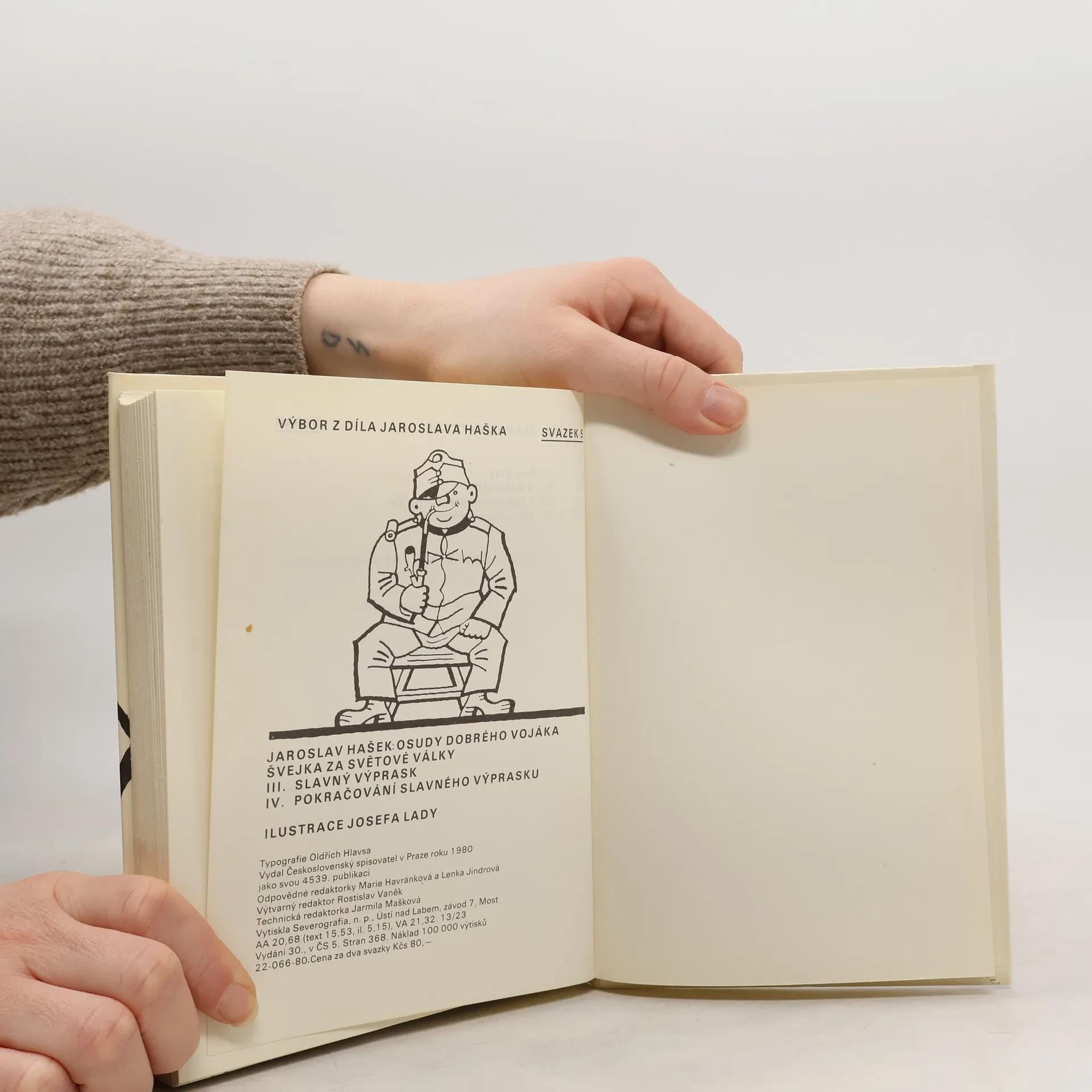 Dobrý voják Švejk je jedna z nejznámějších a nejoblíbenějších postav nejen české, ale i světové literatury. Svědčí o tom spolu s četnými vydáními doma a v zahraničí také skutečnost, že se z díla stala v pravém slova smyslu klasika, která se neustále čte a cituje. Možná bychom mohli mluvit i o součásti naší národní povahy, ať už v dobrém nebo pejorativním smyslu. Švejk, hostinský Palivec, polní kurát Katz, nadporučík Lukáš, sapér Vodička, Baloun a další postavičky nadále žijí svým životem. 22-066-80