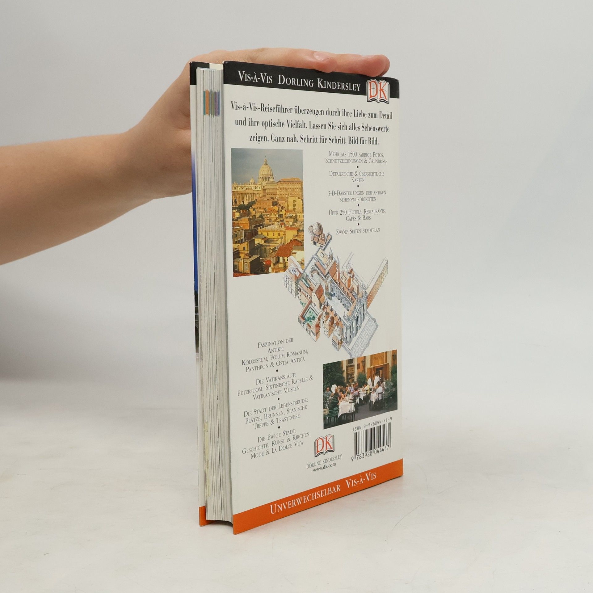 So vielfältig wie Roms Geschichte sind auch die Eindrücke, die den Reisenden in der “Ewigen Stadt“ erwarten. Der Vis-à-Vis-Reiseführer Rom führt Sie zielsicher zu den Highlights in Rom und verrät die schönsten Spaziergänge durch die Metropole. Erkunden Sie die prächtigen Bauten des Vatikans oder lassen Sie sich von den zahllosen Kunstschätzen beeindrucken: Exakte Aufrisszeichnungen und 3D-Grundrisse der wichtigsten Attraktionen und Museen sorgen dafür, dass Ihnen garantiert nichts Interessantes entgeht. Im detaillierten Praxisteil erfahren Sie alles Wissenswerte über Shoppingmöglichkeiten und Unterhaltung und lernen typisch römische Spezialitäten kennen. Hier finden sich auch viele weitere nützliche Informationen und Adressen. Mit Extra-Tipps für den Kurzurlaub!