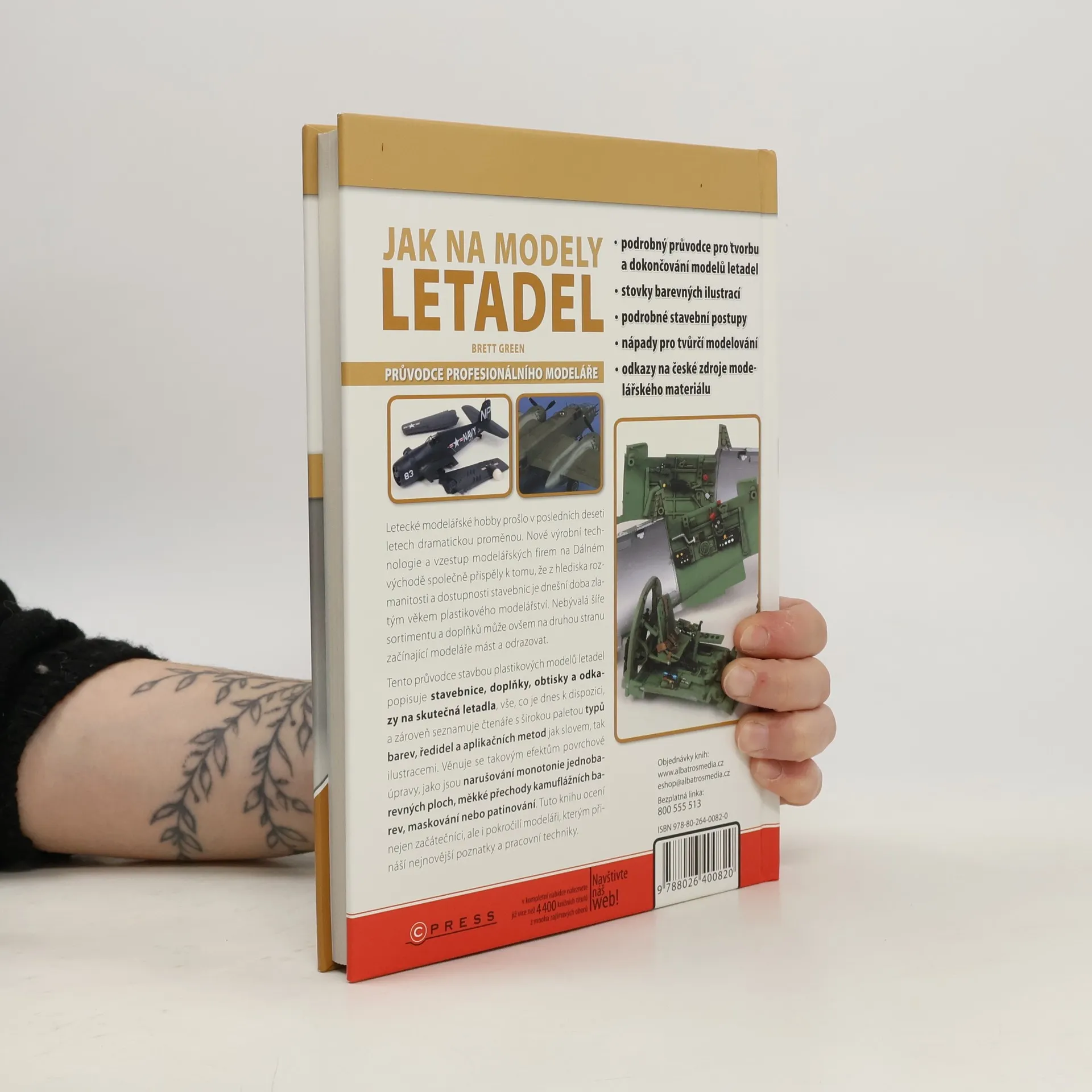 Tento průvodce stavbou plastikových modelů letadel vás postupně a přehledně provede jednotlivými druhy stavebnic, doplňky, obtisky i odkazy na skutečná letadla, vším, co je dnes k dispozici. Seznámí vás se širokou paletou typů barev, ředitel a aplikačních metod jak slovem, tak ilustracemi. Věnuje se takovým efektům povrchové úpravy, jako je narušování monotonie jednobarevných ploch, měkké přechody kamuflážních barev, maskování nebo patinování.