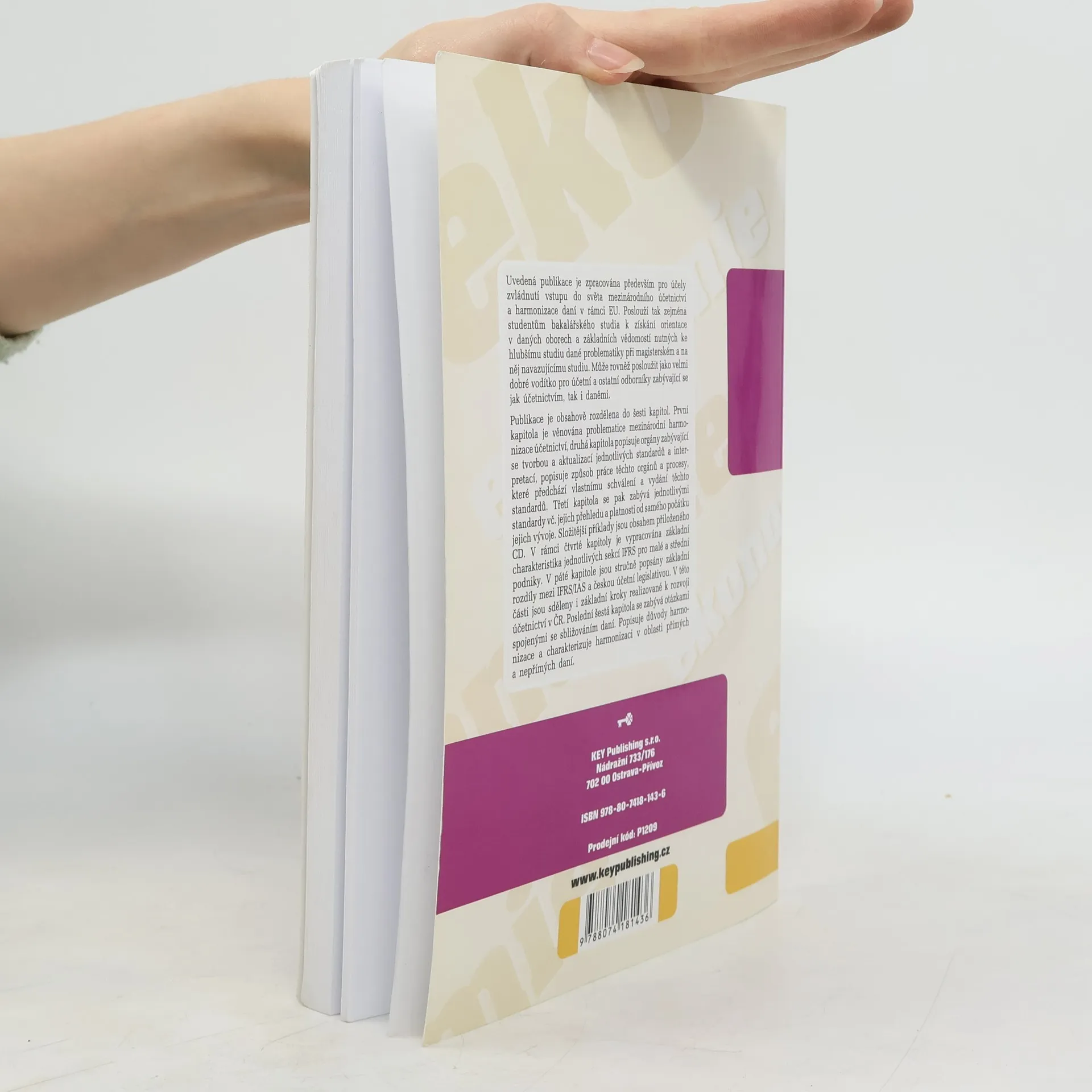 Publikace je určena pro zvládnutí mezinárodního účetnictví a harmonizace daní v EU, zejména pro bakalářské studenty, kteří chtějí získat základní znalosti pro další studium v magisterském programu. Může být také užitečná pro účetní a odborníky v oblasti účetnictví a daní. Obsahuje šest kapitol. První kapitola se zaměřuje na mezinárodní harmonizaci účetnictví. Druhá kapitola popisuje orgány, které se podílejí na tvorbě a aktualizaci standardů, včetně jejich pracovních procesů a schvalování. Třetí kapitola se věnuje jednotlivým standardům, jejich přehledu a historii vývoje. Složitější příklady jsou součástí přiloženého CD. Čtvrtá kapitola charakterizuje sekce IFRS pro malé a střední podniky. Pátá kapitola stručně shrnuje rozdíly mezi IFRS/IAS a českou účetní legislativou a popisuje kroky k rozvoji účetnictví v ČR. Poslední kapitola se zaměřuje na sbližování daní, vysvětluje důvody harmonizace a charakterizuje harmonizaci přímých a nepřímých daní. Publikace obsahuje CD s přílohami.