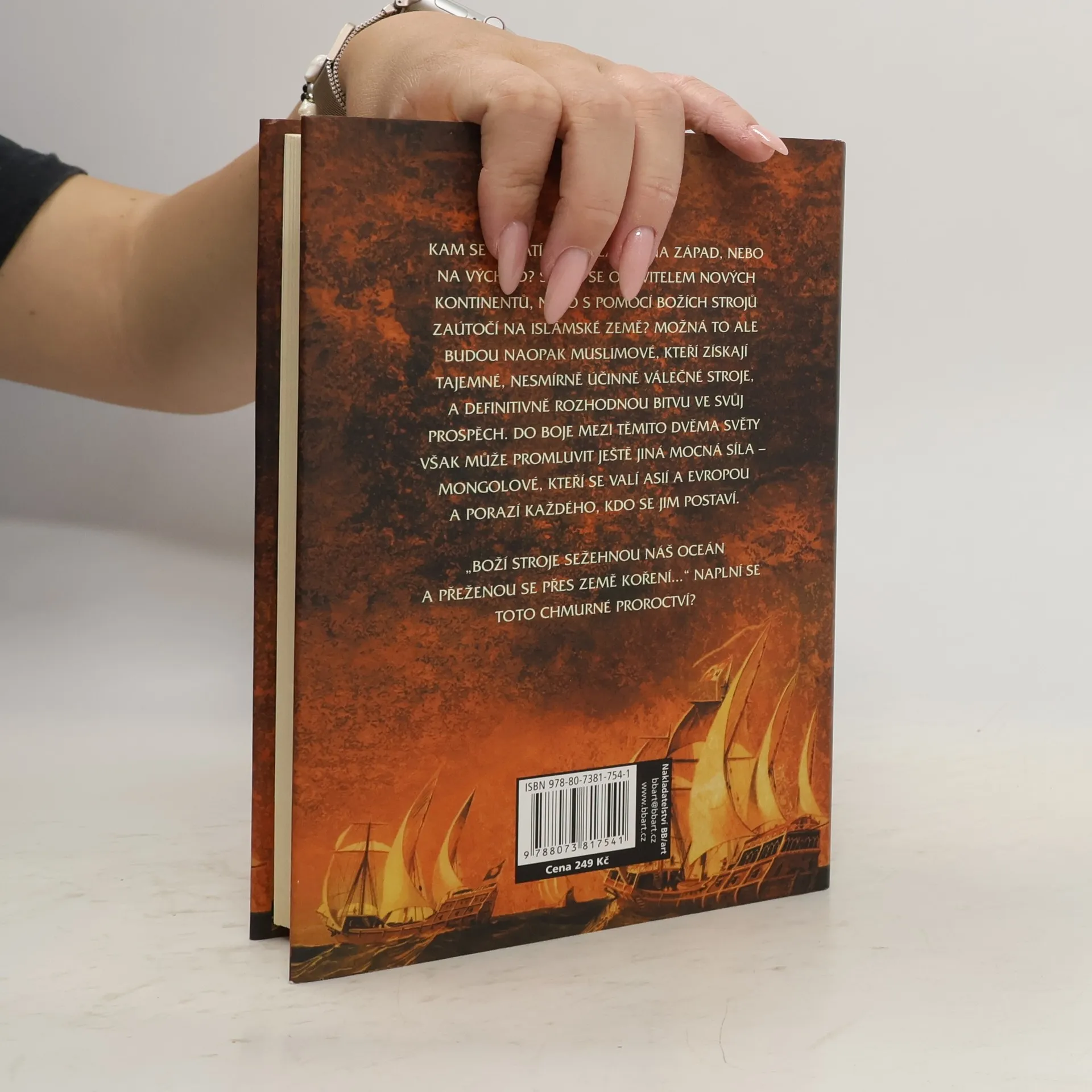 Středozemní moře se stává klíčovou oblastí pro zdánlivě nekonečnou válku mezi islámem a křesťanstvím. Křižáci bojují proti muslimům na Iberském poloostrově i ve Svaté zemi. Španělská inkvizice čistí zemi od vyznavačů Alláha i Židů a někteří inkvizitoři sní o naplnění strašlivého proroctví, jež by znamenalo definitivní vítězství křesťanů. K němu jim má dopomoci jeden mořeplavec. Kam se obrátí, na západ nebo na východ? Stane se objevitelem nových kontinentů nebo s pomocí Božích strojů zaútočí na islámské země? Možná to ale budou naopak muslimové, kteří získají tajemné, nesmírně účinné válečné stroje, a definitivně rozhodnou bitvu ve svůj prospěch. Do boje mezi těmito dvěma světy však může promluvit ještě jiná mocná síla – mongolové, kteří se valí Asií a Evropou a porazí každého, kdo se jim postaví.. Třetí díl historické epopeje Stephena Baxtera nás zavádí na Iberský poloostrov, kde se odehrává boj na život a na smrt mezi Maury a kastilskými králi, jejichž armády postupují na jih ke Středozemnímu moři pomalu, ale s nemilosrdnou neodvratností. První vydání. -- zdroj: legie.info --
