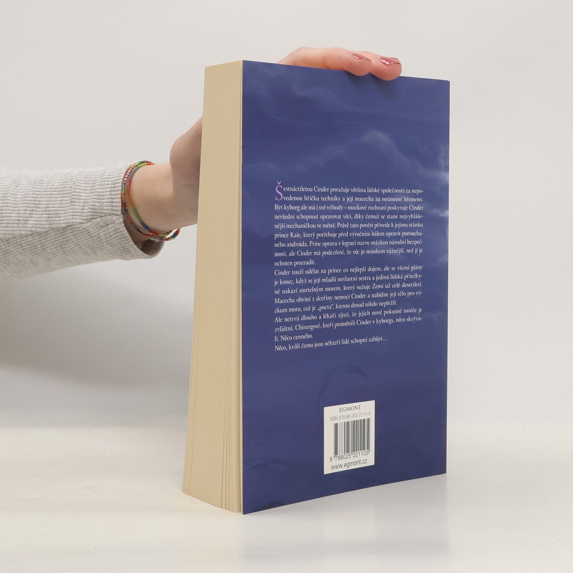 Rušné ulice Nového Pekingu se hemží lidmi a androidy. Populaci devastuje smrtící nákaza. Z vesmíru tomu přihlížejí krutí měsíční lidé, kteří čekají na správný okamžik. Nikdo netuší, že osud Země spočívá v rukou jediné dívky... Šestnáctiletou Cinder považuje většina lidské společnosti za nepovedenou hříčku techniky a její macecha za neúnosné břemeno. Být kyborg ale má i své výhody – mozkové rozhraní poskytuje Cinder nevšední schopnost opravovat věci (roboty, vznášedla, své vlastní nefungující součástky), díky čemuž se stane nejvyhlášenější mechaničkou v Novém Pekingu. Právě tato pověst přivede k jejímu stánku prince Kaie, který potřebuje před výročním bálem opravit porouchaného androida. Princ opravu v legraci nazve otázkou národní bezpečnosti, ale Cinder má podezření, že věc je mnohem vážnější, než jí je princ ochoten prozradit. Cinder touží udělat na prince co nejlepší dojem, ale se všemi plány je konec, když se její mladší nevlastní sestra a jediná lidská přítelkyně nakazí smrtelným morem, který sužuje Zemi už celé desetiletí. Macecha obviní z dceřiny nemoci Cinder a nabídne její tělo pro výzkum moru, což je „pocta“, kterou dosud nikdo nepřežil. Ale netrvá dlouho a vědci zjistí, že jejich nové pokusné morče je zvláštní. Chirurgové, kteří proměnili Cinder v kyborga, něco skrývali. Něco cenného. Něco, kvůli čemu jsou někteří lidé ochotní zabíjet…