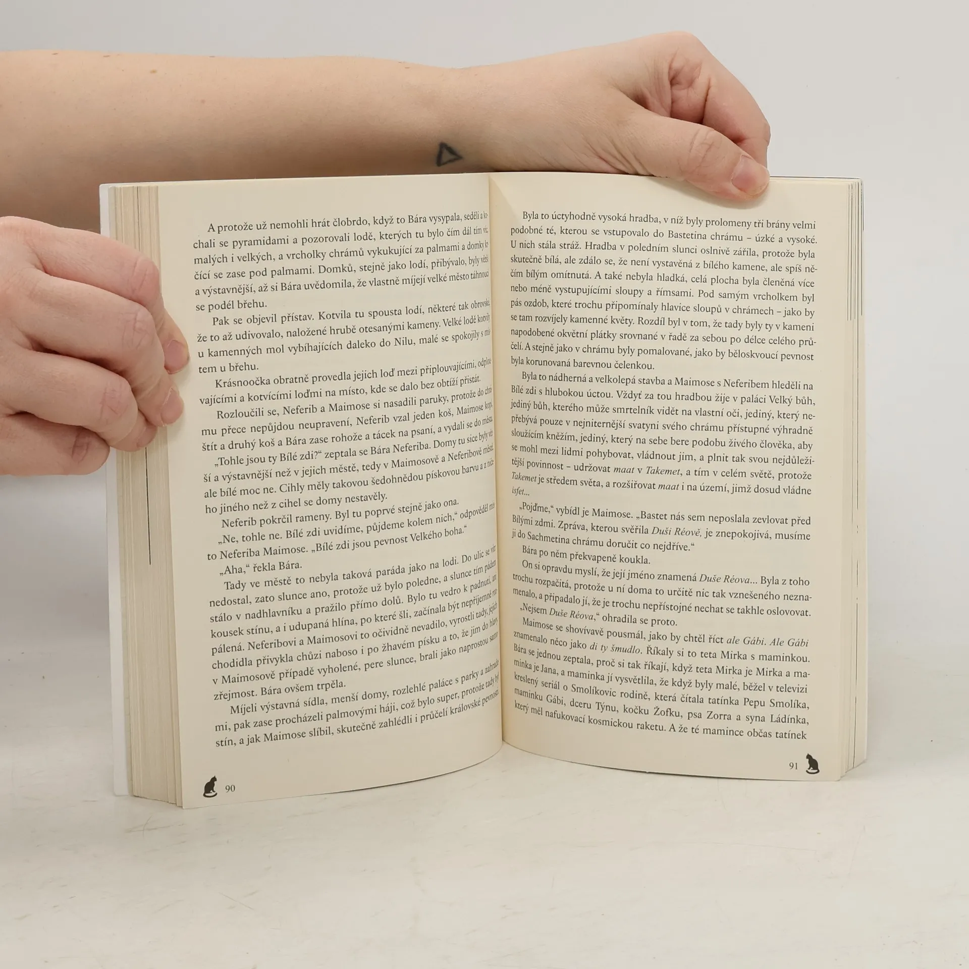 Tentokrát atlas poslal Báru do minulosti sice za dne, ale zato ji šoupl skoro doprostřed Nilu, ve kterém se proháněli hladoví krokodýli. Ještě že byl poblíž šťastnou náhodou lovec Maimose! Nebo to snad nebyla náhoda? Je možné, že Maimose na místo přivedla kočičí bohyně Bastet, aby si na Báře krokodýli nepochutnali? Ať tak či onak, zdá se, že Bastet má s Bárou určité plány. Když totiž Bára v jejím chrámu usne, zelenooká bohyně jí ve snu předá tajemný vzkaz: Ušlechtilé srdce a síla lva nechť duši Réovu doprovodí k bílým zdem - zesnulý Velký bůh nesmí zemřít! Sachmet tě volá! Pátrání po smyslu vzkazu přivede Báru, Maimose a jeho bratra Neferiba nejen na stopu spiknutí proti egyptskému králi Menkauréovi (to je další dějepisný švindl, Egypťané vůbec neznají slovo faraon!), ale nakonec až do samého nitra pyramidy.