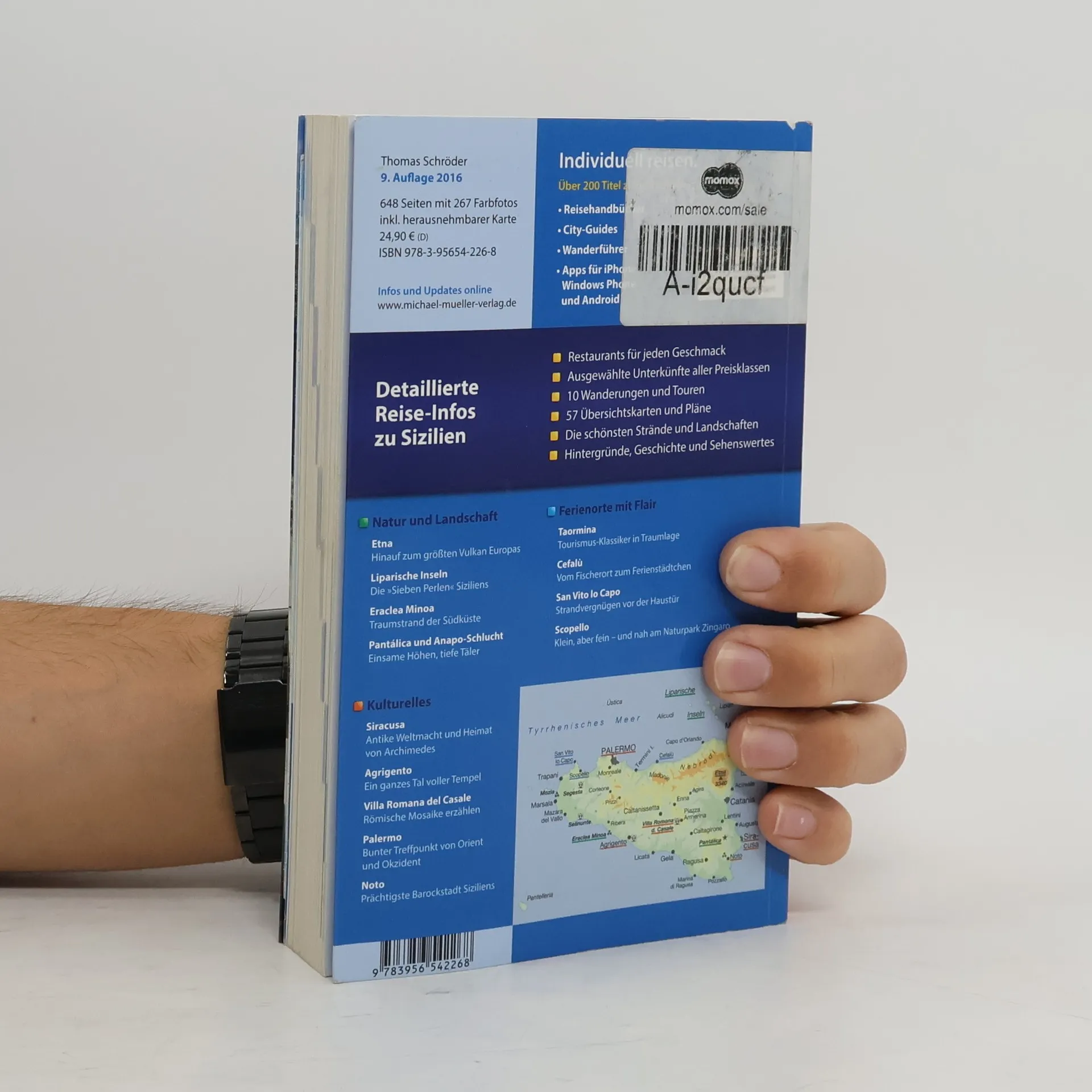 Sizilien, das heißt Sommer von April bis Oktober, griechische Tempel, normannische Kathedralen, lange Strände und eine Vielzahl malerischer Schluchten. Sizilien ist eigentlich schon ein Kontinent für sich und alles andere als ein „pflegeleichtes“ Ferienparadies. Die mit über 25.000 Quadratkilometern größte Insel des Mittelmeers verblüfft durch zahlreiche Kontraste: blühende Zitronenplantagen am Meer und kahle, sonnenverbrannte Berglandschaften, chaotische Metropolen voller krasser sozialer Gegensätze und idyllische Barockstädtchen, hastig hochgezogene Badesiedlungen und einsame Strände. Nicht zu vergessen sind dabei die Inselchen um die Insel, wobei jede ihren eigenen Charakter hat. Auf 660 Seiten findet man eine Fülle von wertvollen Tipps zu Camping, Hotels, Restaurants und Verkehrsmitteln, aber auch interessante Hintergrundberichte zum Sightseeing in Palermo, Baden im Naturpark Zingaro und zur Vulkanbesteigung auf Stromboli. Der Autor Thomas Schröder erweist sich als Landeskenner und hat reichlich Anekdoten zu Sehenswürdigkeiten sowie zur Geschichte und zur Gesellschaft Siziliens parat. Besucht wurden außerdem die Liparischen und Egadischen Inseln, Ustica, Pantelleria, Linosa und Lampedusa!