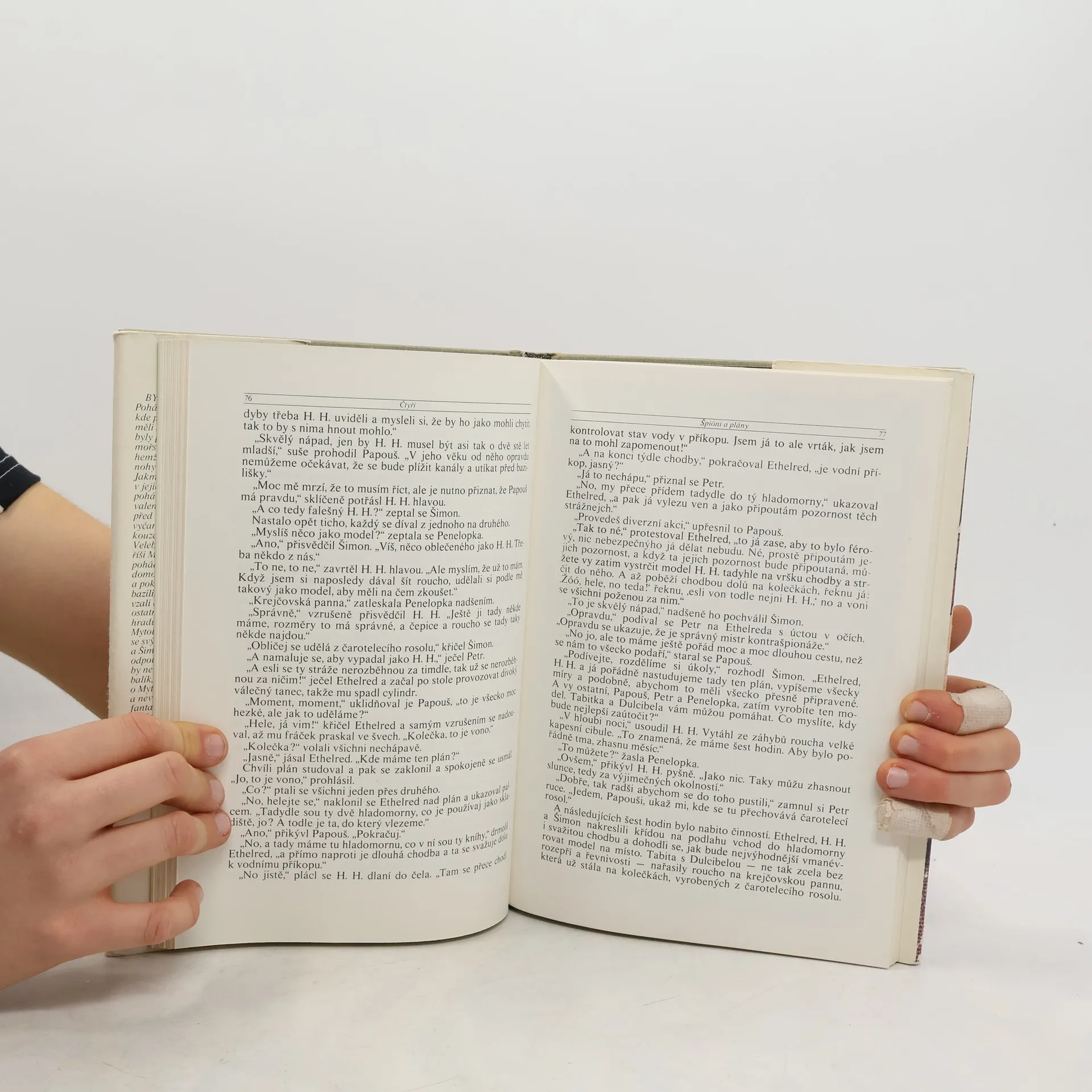 Prázdniny v Řecku právě začínají! Penelopka, Petr a Šimon si hrají na pláži, ale náhle se k nim po vlnách přiblíží velký balík, z něhož se ozývají záhadné hlasy... To vzdělaný papoušek Papouš a jeho zpívající pavoučice Dulcibela připluli hledat pomoc pro zemi Mytologii, kterou ovládli krutí baziliškové. Děti se s nimi vydávají na fantastickou pouť za laskavým čarodějem H. H., ješitnými jednorožci, bezcharakterními ropušáky a snobskými mořskými pannami. Podaří se jim získat zpátky ukradené mluvící knihy a svrhnout bazilišky? Půvabný pohádkový příběh pro děti z pera autora oblíbených příběhů o zvířatech (O mé rodině a jiné zvířeně, Chytněte mi guerézu, Ptáci, zvířata a moji příbuzní).