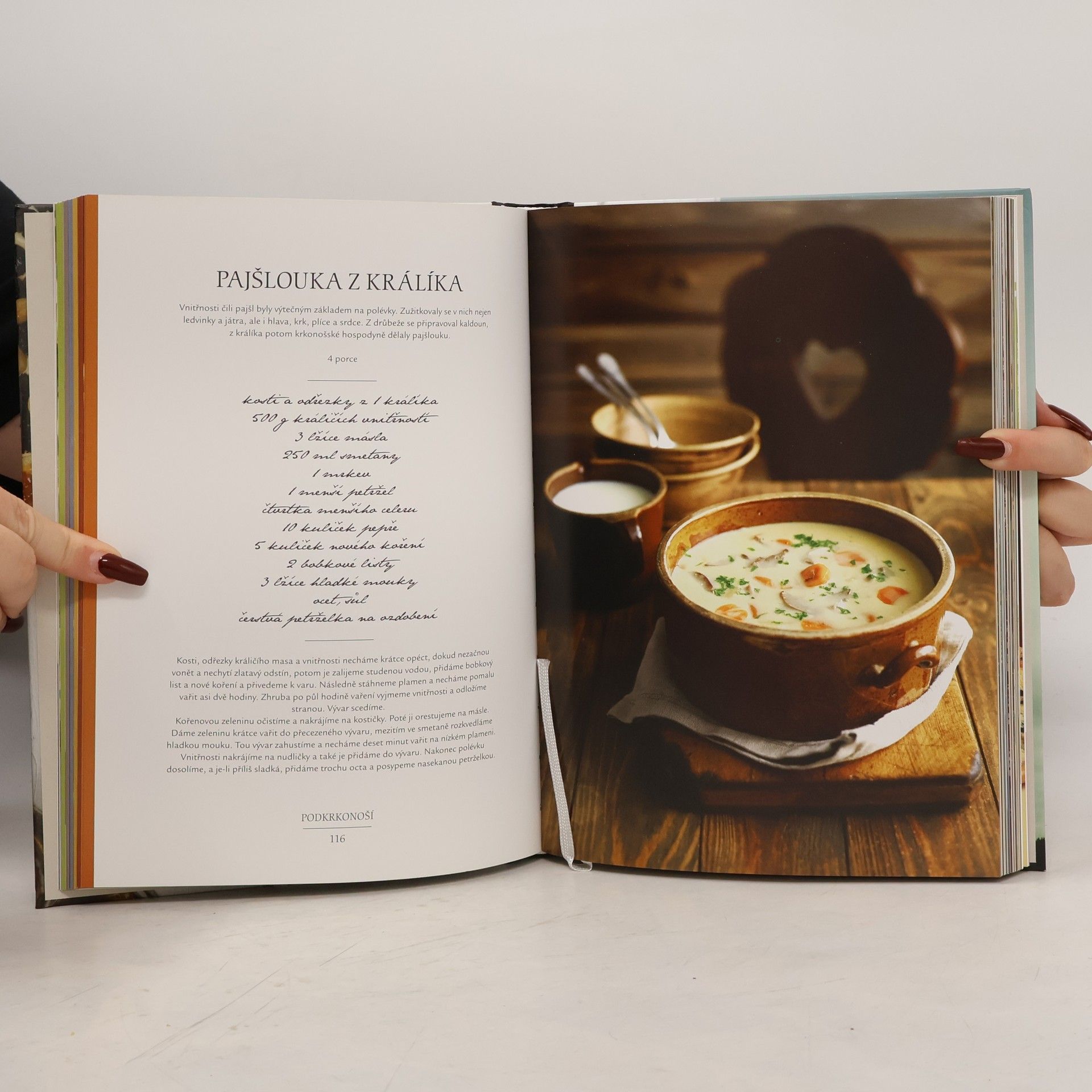 Krajový a krajinný kontext gastronomie je klíčem k pochopení jejích kořenů. Zjistíme, proč jsou na Valašsku "trnky, zemňáky, špek a zelé živobytí celé", proč hanácké omáčky vynikají bohatstvím a proč se v jižních Čechách hojně používalo máslo. Každý region v Česku má své jedinečné recepty, od miletínských modlitbiček a hořických trubiček v Podkrkonoší po oskerušové perníčky na Slovácku. Kapitoly jsou rozděleny podle regionů jako Praha, Polabí, Krkonoše, Královehradecko, Pošumaví, Chodsko, Jižní Čechy, Českomoravská vysočina, Brno a okolí, Slezsko, Haná, Slovácko, Valašsko a Severní Čechy. Každá kapitola začíná úvodem, který představuje region a specifika jeho kuchyně, včetně použití surovin a přípravy jídel, a popisuje historické a kulturní kontexty spojené s jídlem. Kniha obsahuje prvky národopisu, historie a zajímavosti, jako například, kde najít největší oskeruši nebo pálenku oskerušovici. Hlavní důraz je však kladen na tradiční pokrmy, přičemž každá kapitola nabízí deset receptů, včetně polévek, masitých jídel a sladkostí, doplněných krásnými fotografiemi pokrmů a krajiny.