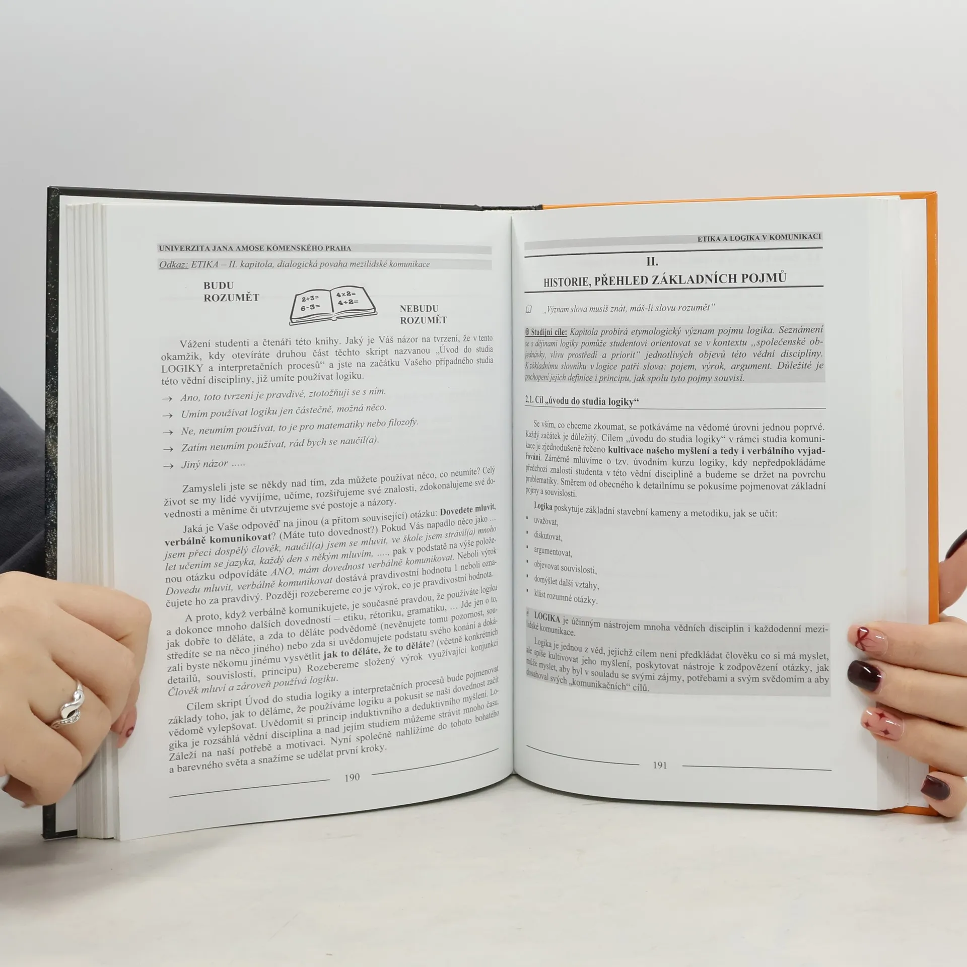 Tato publikace, je projektem společného učebního textu oborů etiky a logiky pro studium komunikace. Etika a logika (stejně jako i rétorika a komunikace vůbec) vzešly ze společného zdroje - z filosofie. Ostatně řecké slovo logos znamená jak slovo, tak myšlenku či ducha. Už podle Aristotela jsou základními principy jakékoli řeči nebo projevu ethos - mravní zásady, pathos - schopnost působit na city lidí a logos - moudrost, logické uspořádání myšlenek.