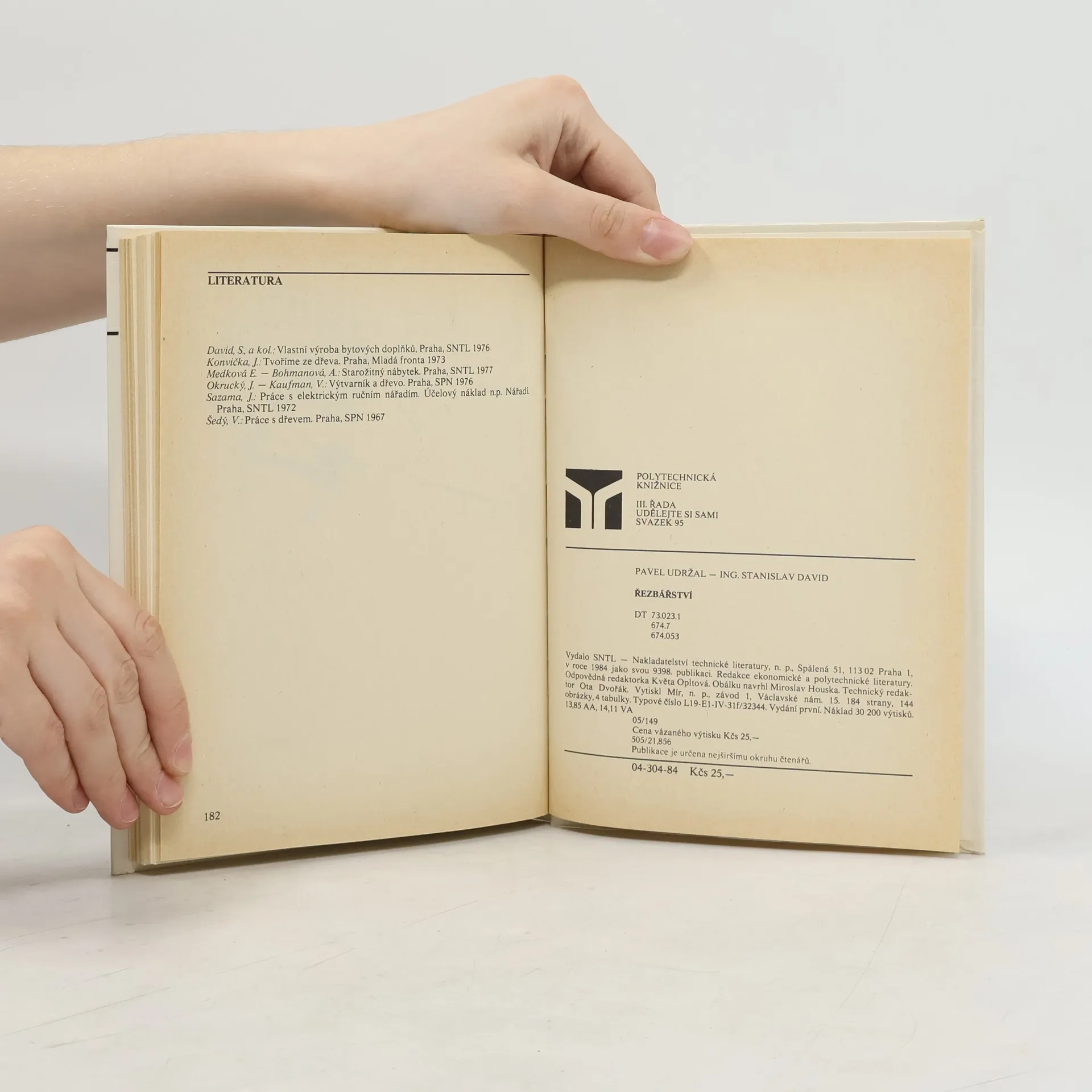 Přehledně informuje o materiálech a nástrojích používaných v řezbářství a o jejich údržbě. Seznamuje se základními řezbářskými technikami a postupy, soustružením dřeva, intarzováním a povrchovou úpravou hotových výrobků.Pracovní postupy jsou ukázány na příkladech výrobků.Text je doplněn názornými ilustracemi. Určeno nejširšímu okruhu čtenářů.
