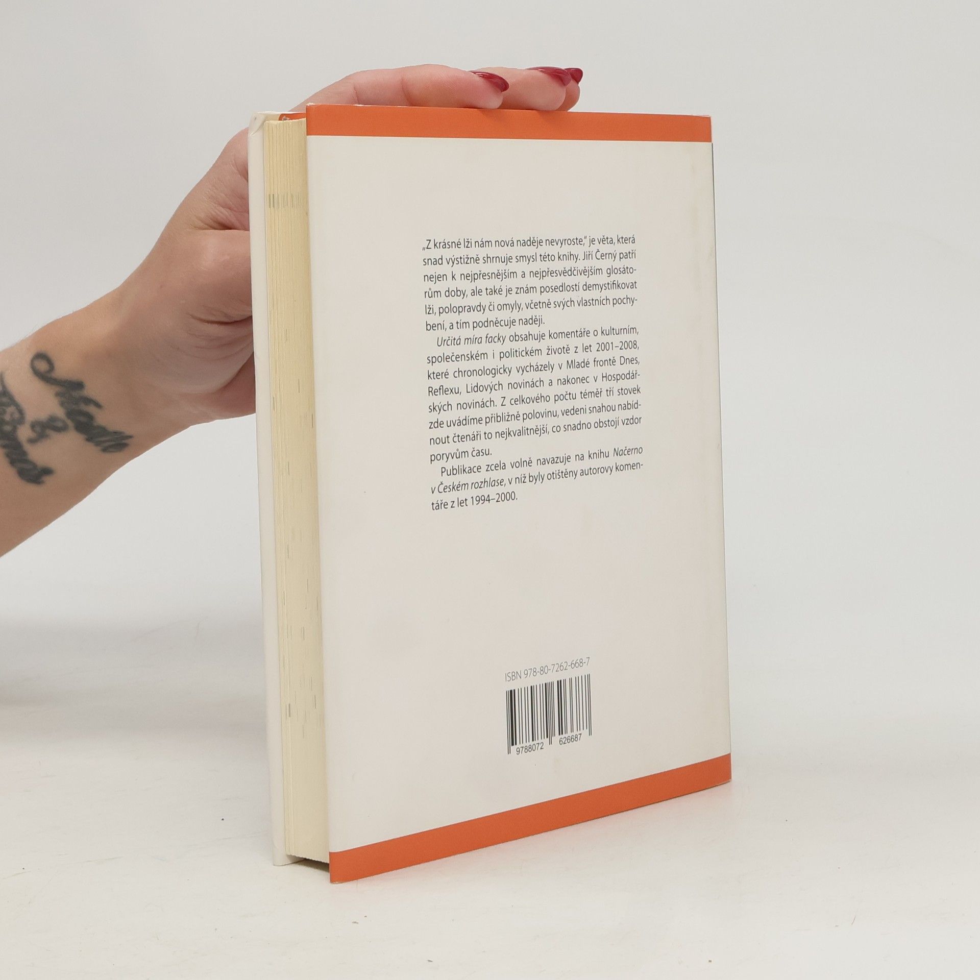 Určitá míra facky obsahuje komentáře o kulturním, společenském i politickém životě z let 2001-2008, které chronologicky vycházely v Mladé frontě Dnes, Reflexu, Lidových novinách a nakonec v Hospodářských novinách. Z celkového počtu téměř tří stovek zde uvádíme přibližně polovinu, vedeni snahou nabídnout čtenáři to nejkvalitnější, co snadno obstojí vzdor poryvům času. Publikace zcela volně navazuje na knihu Načerno v Českém rozhlase (Torst, 2000), v níž byly otištěny autorovy komentáře z let 1994-2000.