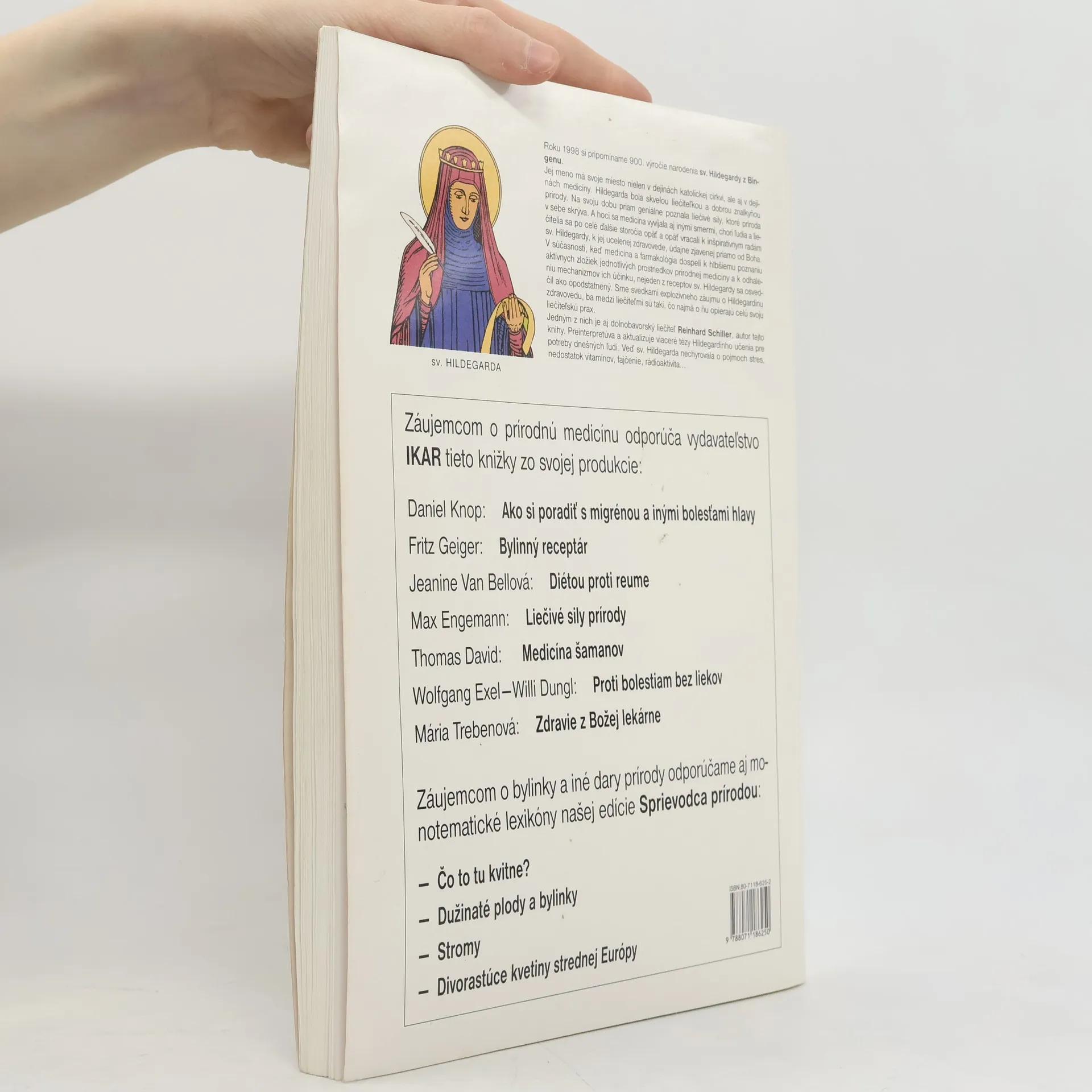 Meno sv. Hildegardy z Bingenu má svoje miesto nielen v dejinách katolíckej cirkvi, ale aj v dejinách medicíny. Hildegarda bola skvelou liečiteľkou a dobrou znalkyňou prírody. Na svoju dobu priam geniálne poznala liečivé sily, ktoré v sebe príroda skrýva. A hoci sa medicína vyvíjala aj inými smermi, chorí ľudia a liečitelia sa po stáročia opäť a opäť vracali k inšpiratívnym radám sv. Hildegardy, k jej ucelenej zdravovede, údajne zjavenej priamo od Boha. V súčasnosti, keď medicína a farmakológia dospeli k hlbšiemu poznaniu aktívnych zložiek jednotlivých prostriedkov prírodnej medicíny, ukázal sa nejeden z receptov sv. Hildegardy ako účinný. Záujem o Hildegardinu zdravovedu je stále intenzívny a medzi liečiteľmi sú mnohí, čo svoju liečiteľskú prax opierajú predovšetkým o jej metódy. Jedným z nich je aj dolnobavorský liečiteľ Reinhard Schiller, autor tejto knihy. Nanovo interpretuje a aktualizuje viaceré tézy Hildegardinho učenia pre potreby dnešných ľudí. Veď sv. Hildegarda nechyrovala o pojmoch ako stres, nedostatok vitamínov či fajčenie...