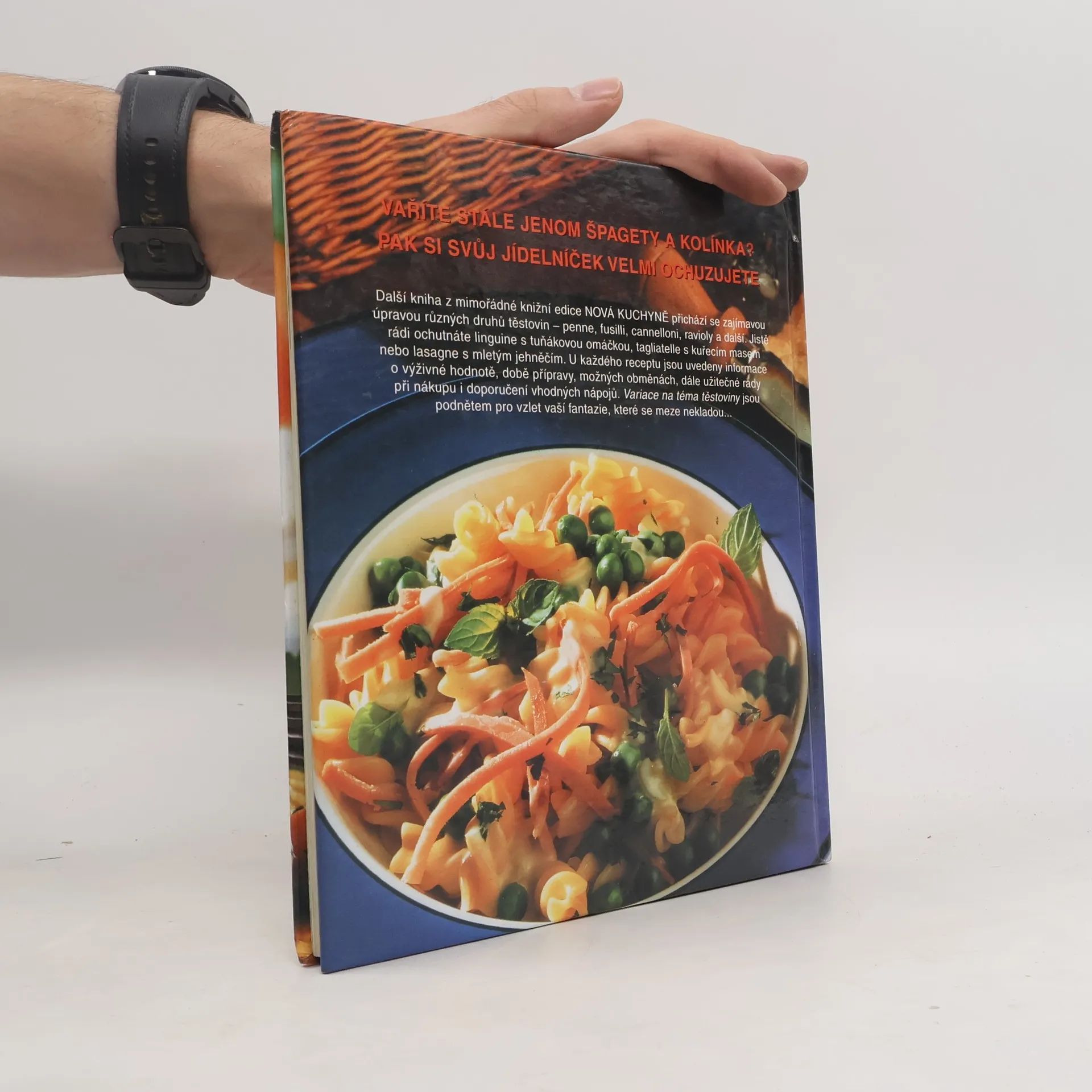 Další kniha z edice Nová kuchyně přichází se zajímavou úpravou různych druhů těstovin - penne, fusilli, cannelloni, ravioli a další. U každého receptu jsou uvedeny informace o výživové hodnotě, době přípravy, možných obměnách a dále užitočné rady při nákupu i doporučení vhodných nápojů
