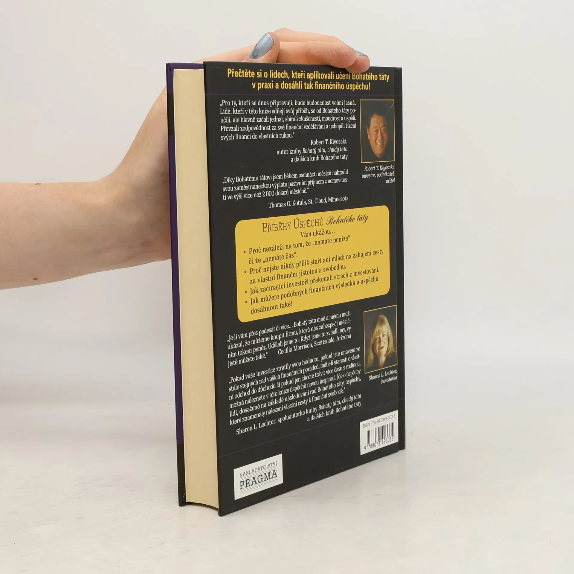 Přečtěte si o lidech, kteří aplikovali učení Bohatého táty v praxi a dosáhli tak finančního úspěchu! Lidé, kteří tyto příběhy napsali, se odhodlali jednat a jako výsledek se dostavil úspěch. Těmto lidem se finančně dařilo, i když ve stejnou dobu miliony jiných lidí prodělávaly miliardy dolarů. Tato konha vám ukáže, proč nezáleží na tom, že „nemáte peníze“ či že „nemáte čas“, proč nejste nikdy příliš staří ani mladí na zahájení cesty za vlastní finanční jistotou a svobodou, Jak začínající investoři překonali strach z investování a jak můžete podobných finančních výsledků a úspěchů dosáhnout také!
