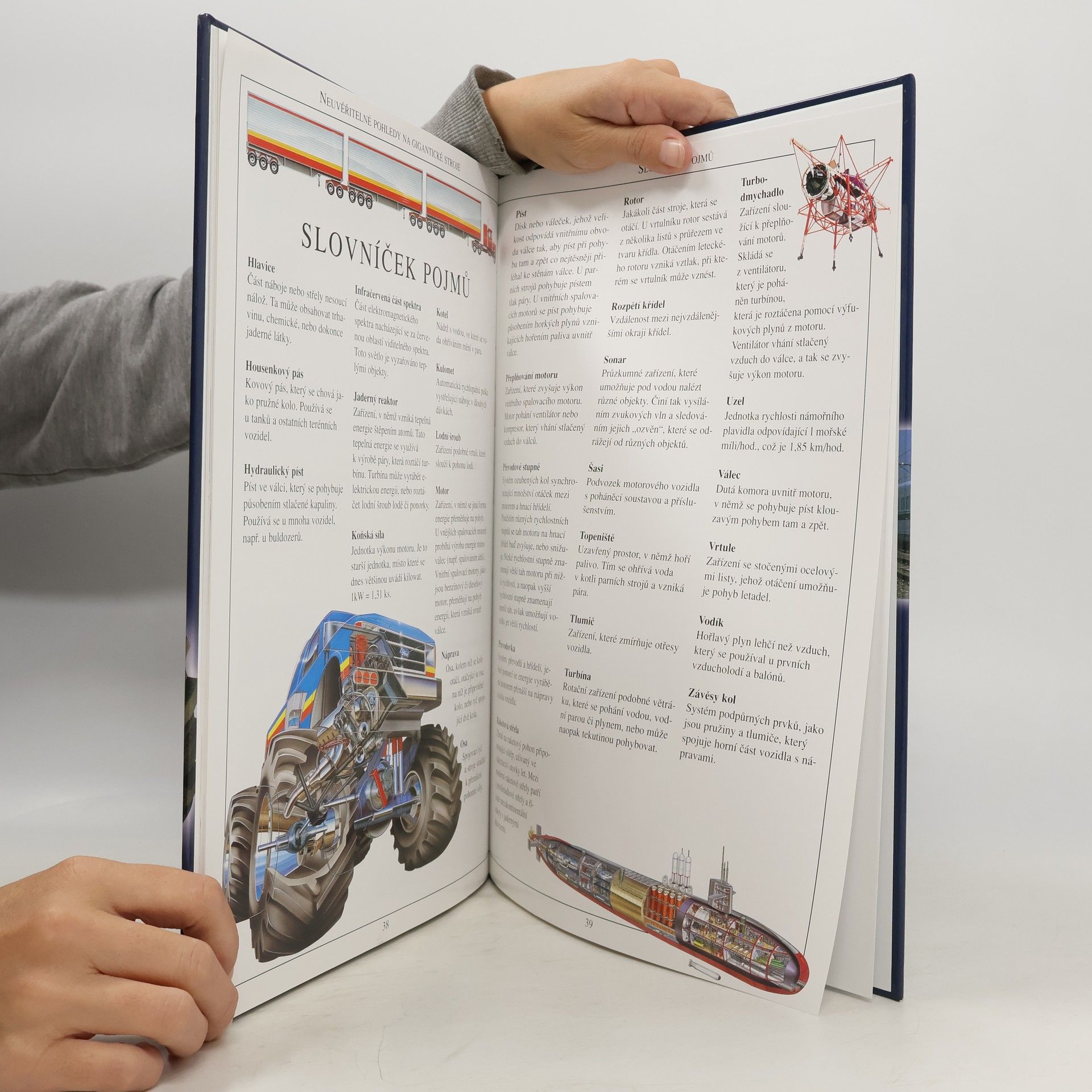Obrazová publikace velkého formátu nabízí průřezy obrovskými stroji - pomocníky člověka. Můžete tak nahlédnout do nitra obří sklápěčky, parní lokomotivy, atomové ponorky, kombajnu, obrněného tanku nebo legendární létající pevnosti - bombardéru B-17. S touto knihou můžete prožít dobrodružství vývoje těchto monster a dozvědět se řadu zajímavostí o strojích, bez nichž by člověk nikdy nedosáhl řady úspěchů, které dnes považujeme za samozřejmé. první dotisk vydání druhého