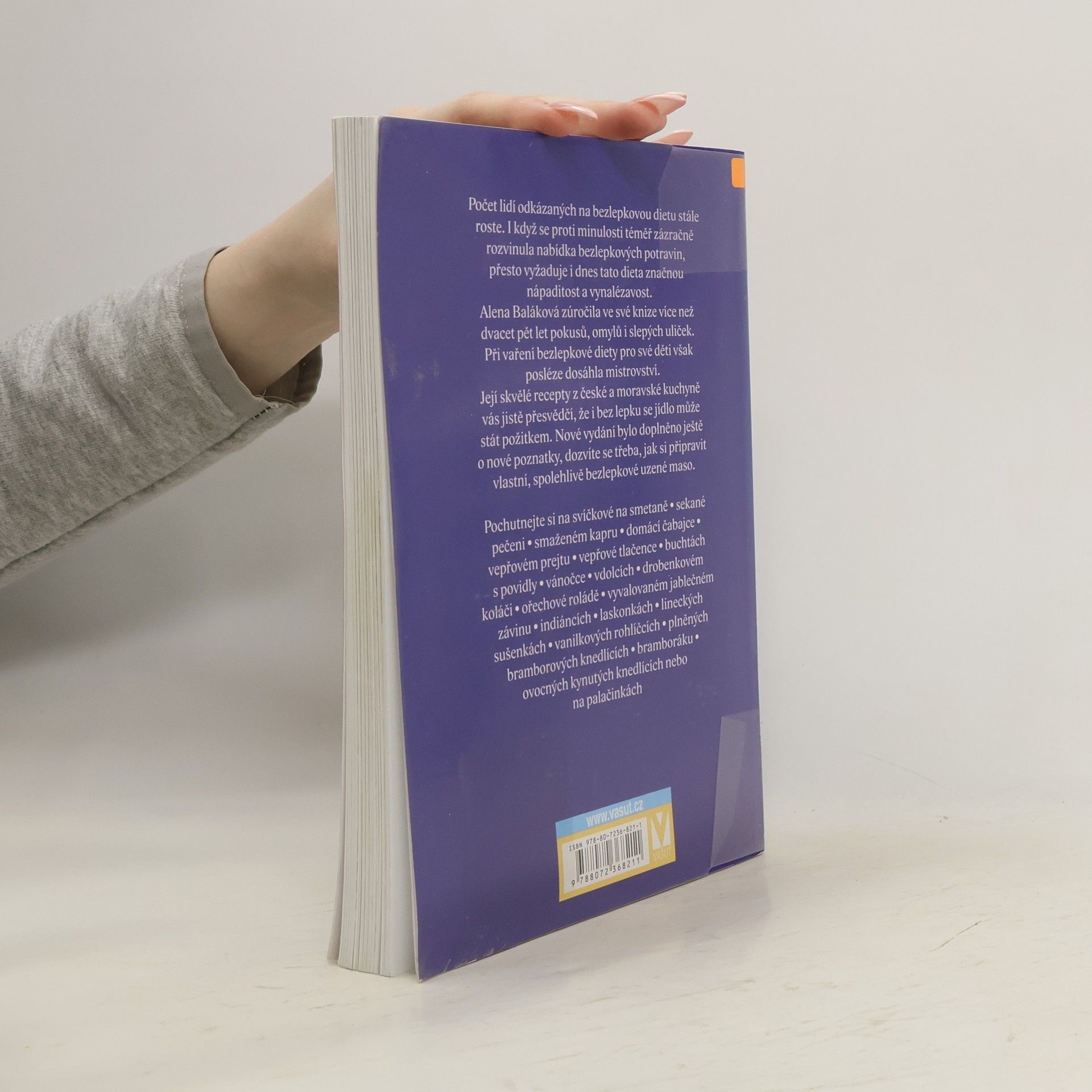 Počet lidí odkázaných na bezlepkovou dietu stále roste. I když se proti minulosti téměř zázračně rozvinula nabídka bezlepkových potravin, přesto vyžaduje i dnes tato dieta značnou nápaditost a vynalézavost. Alena Baláková zúročila ve své knize více než dvacet pět let pokusů, omylů i slepých uliček. Při vaření bezlepkové diety pro své děti však posléze dosáhla mistrovství. Její skvělé recepty z české a moravské kuchyně vás jistě přesvědčí, že i bez lepku se jídlo může stát požitkem. Nové vydání bylo doplněno ještě o nové poznatky, dozvíte se třeba, jak si připravit vlastní, spolehlivě bezlepkové uzené maso. Pochutnejte si na svíčkové na smetaně • sekané pečeni • smaženém kapru • domácí čabajce • vepřovém prejtu • vepřové tlačence • buchtách s povidly • vánočce • vdolcích • drobenkovém koláči • ořechové roládě • vyvalovaném jablečném závinu • indiáncích • laskonkách • lineckých sušenkách • vanilkových rohlíčcích • plněných bramborových knedlících • bramboráku • ovocných kynutých knedlících nebo na palačinkách