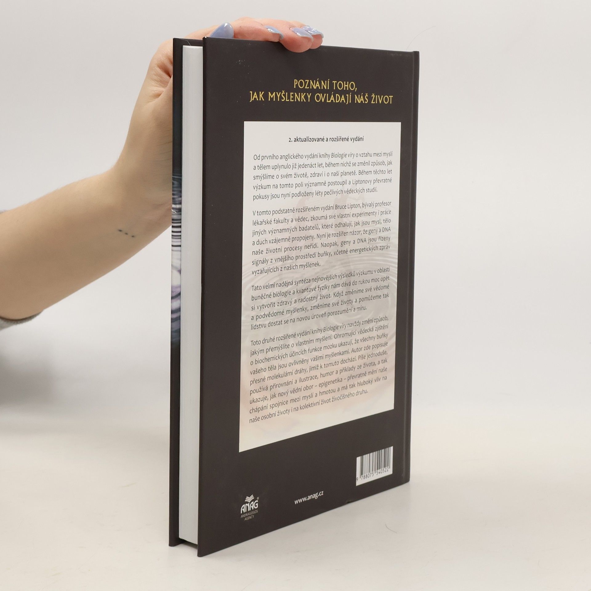 Přestože název knihy mnoho nenapoví, její obsah vás překvapí, či dokonce ohromí. Věřte, že tělo i mysl lze změnit pouhými myšlenkami Autor v knize Biologie víryodhaluje tajemství, ke kterému vědci dospěli teprve nedávno, a sice že můžeme změnit svou biologii – tedy naše tělo i mysl – díky svému uvědomělému chování a myšlenkám. Jak sám ověřil na vlastním životě i na mnoha pokusech, to, co nás zásadním způsobem ovlivňuje, není naše DNA, jak si dosud vědci mysleli, ale buněčná membrána, skrze niž se do buňky dostává vše potřebné, od výživy, léků až po stresové hormony. To je tedy ten „mozek buňky“, který pro nás má tak zásadní význam. Myslete pozitivně – pomůžete tak svému tělu Jsme-li v dobré pohodě, buňky dostávají vše potřebné pro svůj růst. Pokud však žijeme ve strachu a neustálém stresu, buňky chřadnou – jsou totiž v obranné pozici, která jim neumožňuje růst a rozvíjet se. Autor na mnoha zajímavých pokusech a také příkladech ze života přibližuje čtenáři fungování buňky, vliv buněčné membrány a DNA a dokazuje, že život není založen jen na „materiální“ informaci, hmotě, v tomto případě představované DNA, ale že jej ovlivňují a řídí nehmotné, energetické signály z prostředí mimo buňku.