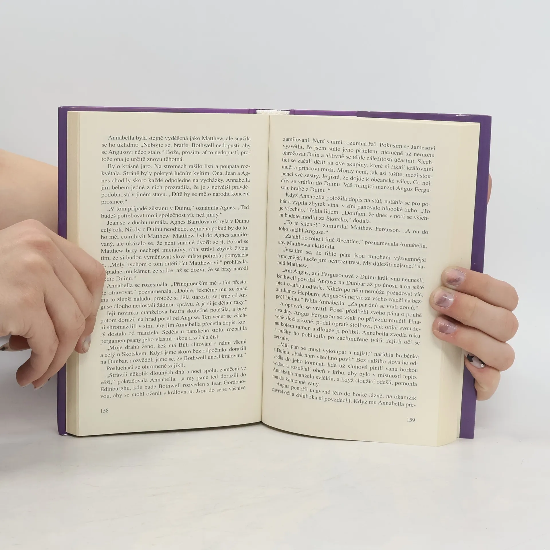 Angus Ferguson, hrabě z Duinu, považovaný za nejpohlednějšího muže na hranici, žije poklidným způsobem života, a aby neohrozil svůj malý rod, vyhýbá se věčných politickým pletichám svých sousedů. Teď, výměnou za kus půdy, po které dávno prahnul, získal za manželku Annabellu Bairdovou, nehezkou dceru statkáře z Rathu. Anguse kdysi zklamala krásná žena a on je rád, že se oženil s nehezkou Annabellou, protože věří, že mu bude věrná. Brzy zjistí, že za jejím skromným chováním se skrývá divoká kočka s jiskrou, která čeká na zažehnutí. Ale když přijmou pozvání ke dvoru skotské královny Marie, jejich život se zkomplikuje, protože se stanou součástí tamních intrik... Mariin nešťastný sňatek s jejím vzdáleným příbuzným lordem Darnley nebyl šťastný. Ještě hůř, vehnal ji do náruče jiného muže, Jamese Hepburna, okouzlujícího a mocného hraběte z Bothwellu. Když je Darnley zavražděn a Marie se velice brzy po jeho smrti provdá za Bothwella, královnini nepřátelé rozpoutají válku, která rozdělí Skotsko a vystaví zkoušce dávné přátelství hraběte z Duinu a Jamese Hepburna. Současně prověří pevnost vášnivého pouta mezi Agnusem a Annabellou tak, jak nikdy nepředpokládali...
