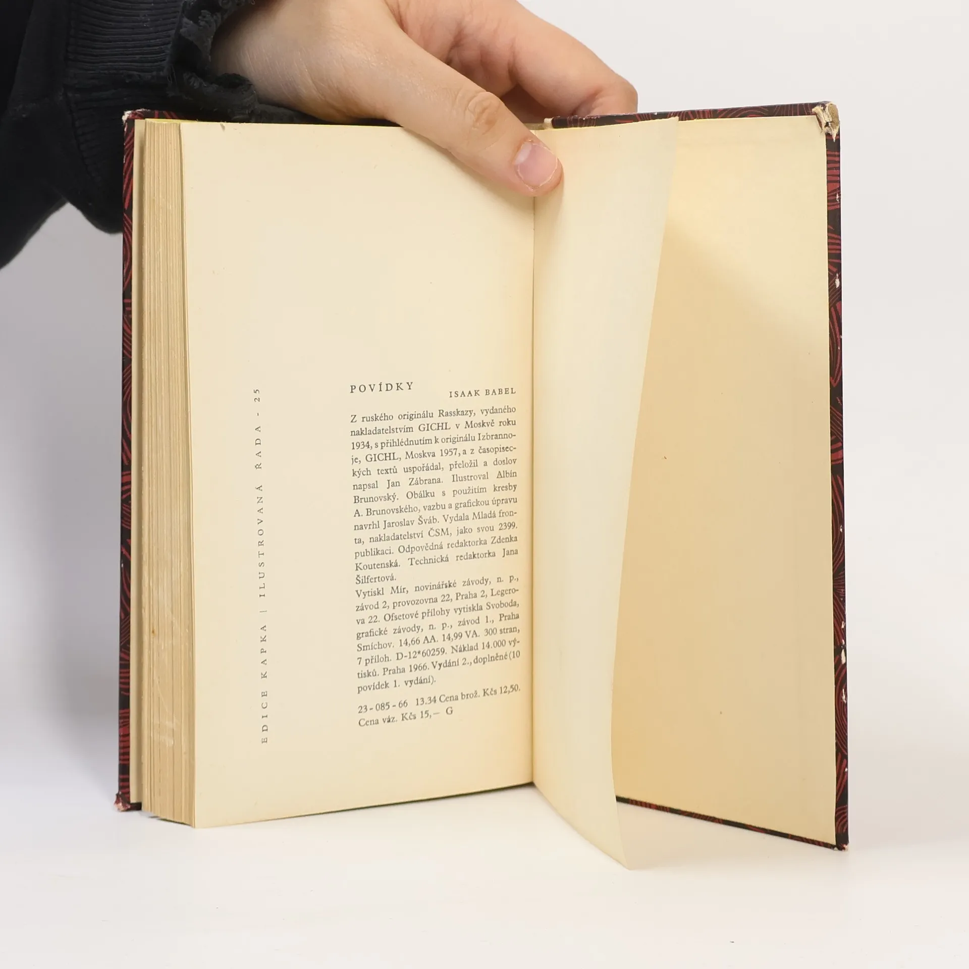 Druhé, doplněné české vydání Babelových povídek. Z ruských knižních originálů a časopiseckých textů vybral, přeložil a doslov napsal Jan Zábrana. Edice Kapka, Ilustrovaná řada sv. 25.
