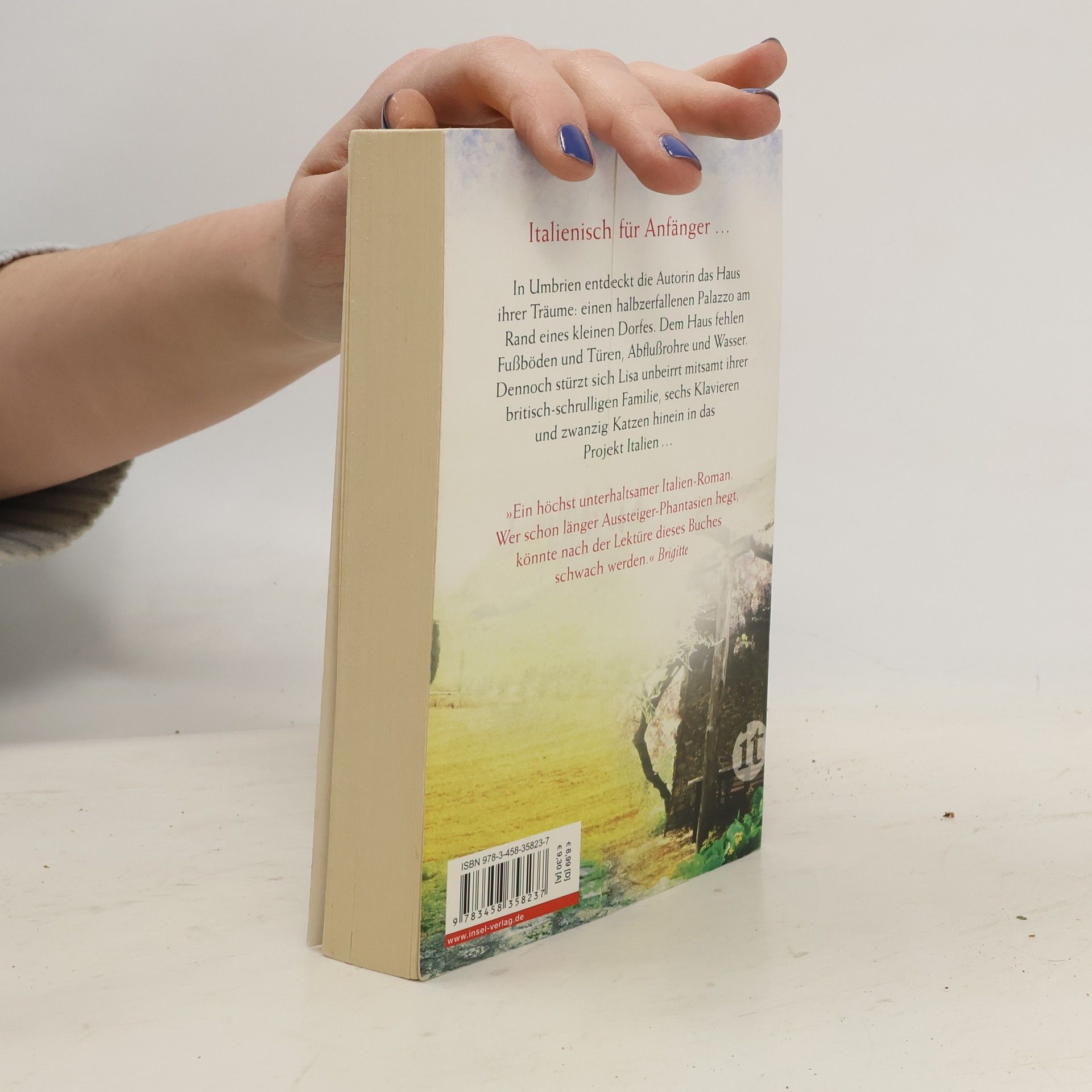 In Umbrien entdeckt die Autorin das Haus ihrer Träume: einen halbzerfallenen Palazzo am Rand eines kleinen Dorfes. Das Haus ist hohl und löchrig, es fehlen Fußböden und Türen, Abflußrohre und Wasser. Dennoch stürzt sich Lisa unbeirrt mitsamt ihrer britisch-schrulligen Familie, sechs Klavieren und zwanzig Katzen hinein in das Projekt Italien. Die Dorfbewohner wundern sich, die Handwerker sind nicht immer wohlgesonnen, Banken endlos bürokratisch, Träume in jeder Hinsicht extravagant. Der schottische Maler-Ehemann stolziert in Highland-Montur über das Anwesen, um den Fortgang der Bauarbeiten zu inspizieren, während die hübsche Tochter Iseult sämtlichen Jungen im Dorf den Kopf verdreht …