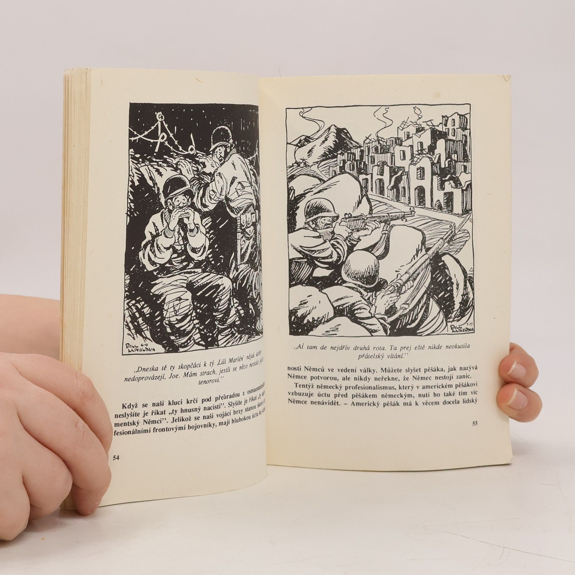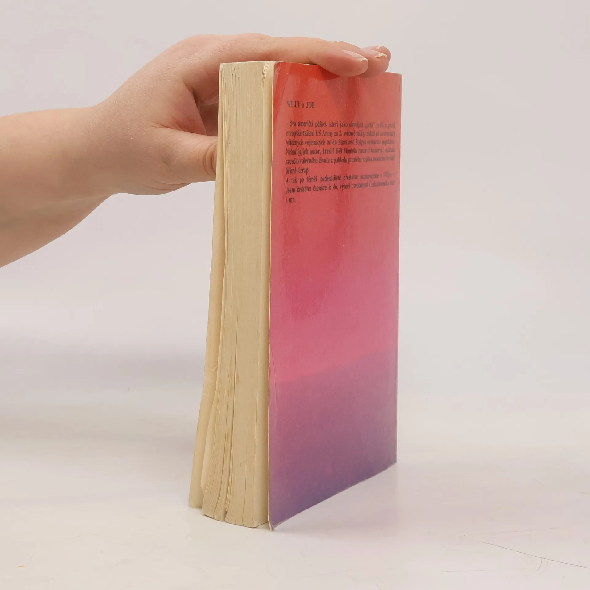 Willy a Joe - dva američtí pěšáci, kteří jako obyčejná "ucha" prošli a prožili evropské tažení US Army za 2.světové války, získali už na stránkách válečných vojenských novin Stars and Stripes nesmírnou popularitu. Neboť jejich autor, kreslíř Bill Mauldin nastavil humorné i satirické zrcadlo válečného života z pohledu prostého vojáka, nesoucího největší břímě útrap. A tak po téměř padesátileté přestávce seznamujeme s Willym a Joem českého čtenáře k 46. výročí osvobození Československa rádi i my.