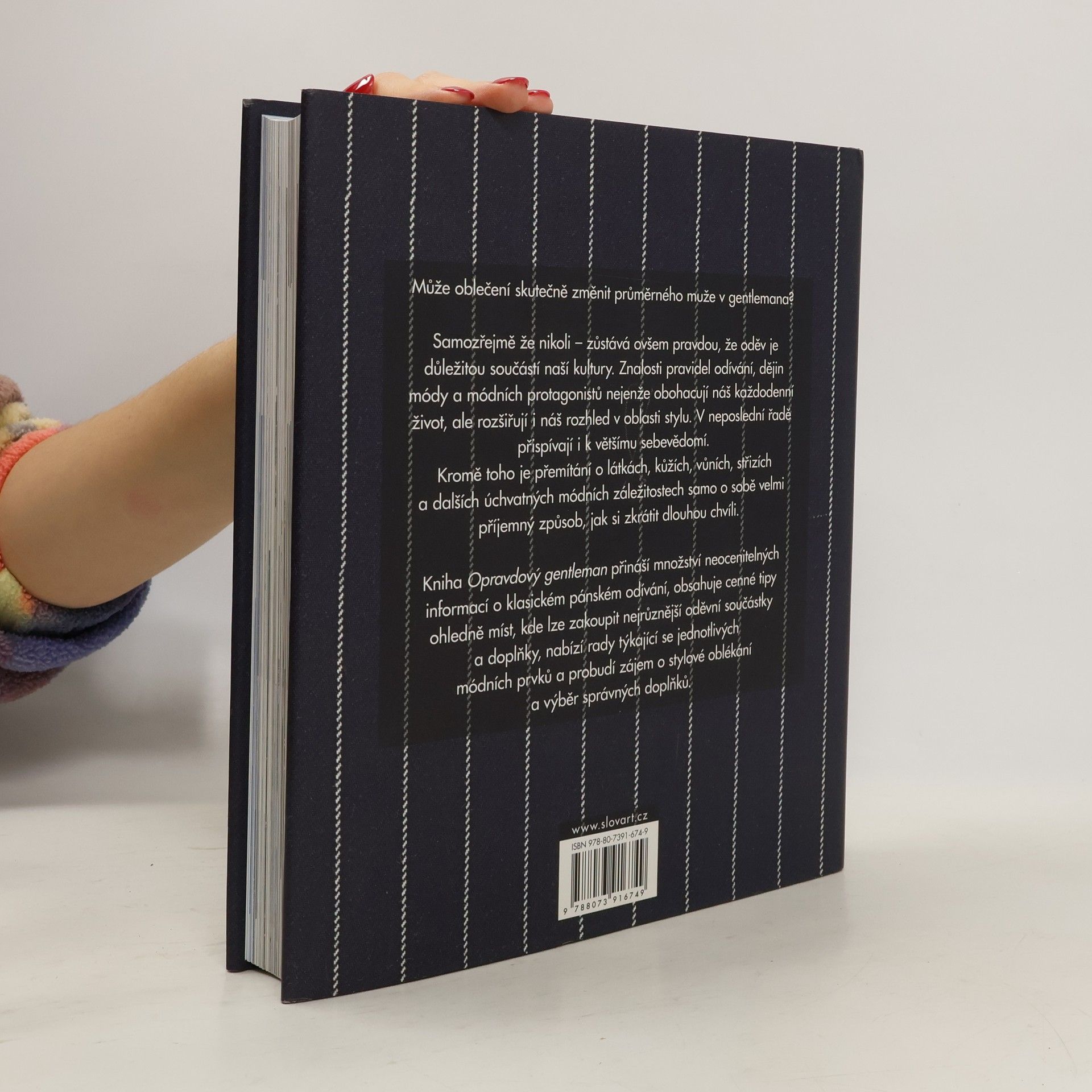 Kniha Opravdový gentleman je skutečnou studnicí vědění o klasickém pánském odívání a obsahuje nepřeberné množství rad týkajících se jednotlivých kombinací známých vzorů, materiálů a látek. Dále přináší celou řadu cenných a užitečných tipů týkajících se pánského odívání a adres míst, kde lze jednotlivé oděvní součástky a doplňky zakoupit; nabízí rady ohledně jednotlivých prvků a probouzí ve čtenáři lásku ke stylovému oblékání a výběru správných doplňků