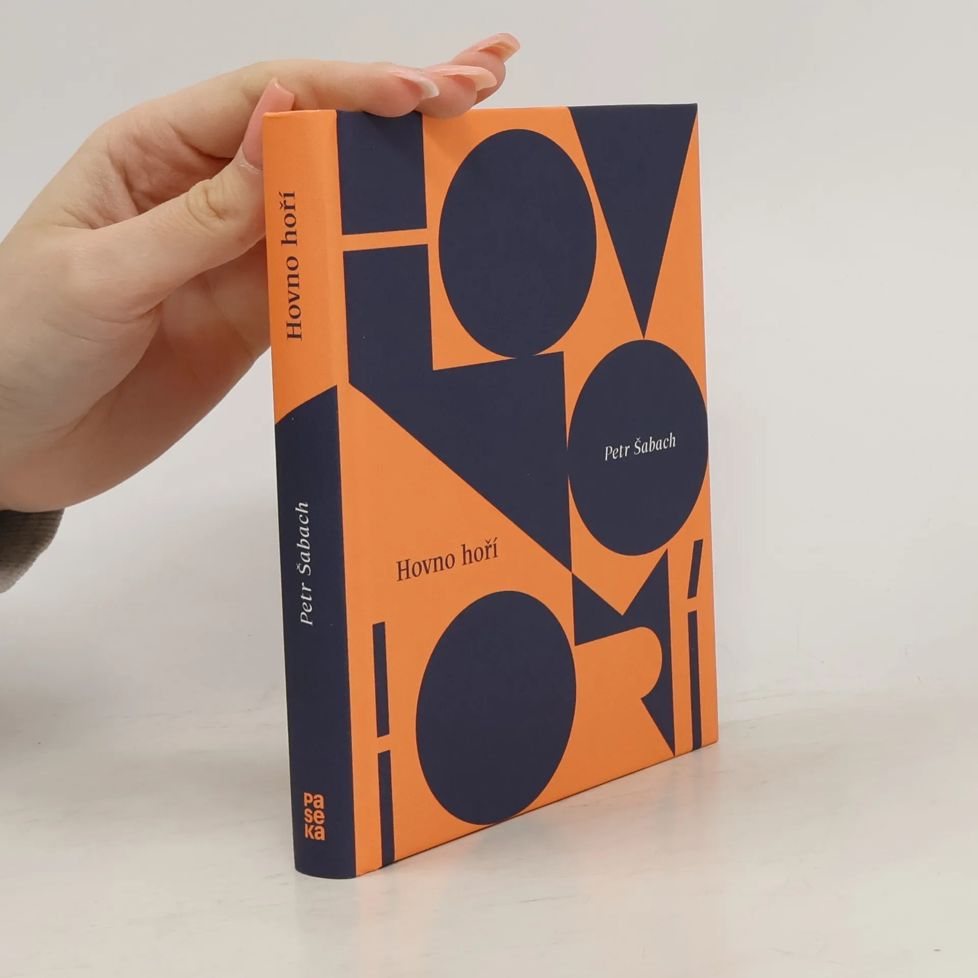 Cesta do Paříže a nepohodlný autobus plný povykujících dětí. Zatímco holky se rozplývají nad krásou plyšáka, dva obrýlení kluci vedle smrtelně vážně řeší otázku, jestli hovno hoří. Vesmíry oddělené úzkou uličkou. V základu Šabachových povídek stojí svět dětství a dospívání v časech, kdy se zdravilo Čest práci, soudruhu, a pionýři testovali svou odvahu napětím elektrického proudu. Vztahy mezi otci a syny, mezi muži a ženami i zarputilými starci, kteří se u piva hádají o to, kolik měří medvěd kodiak. Holčička tu pozorně sleduje svět mužů ze střechy domu a postupně upouští od myšlenky na změnu pohlaví a syn vojenského důstojníka páchá sabotáž na jeho nástěnku s týdenním rozpisem jídelníčku. Hovno hoří je souborem tří povídek poskládaných jako střípky nerozbitné plastové skleničky, kterou Šabachovi hrdinové pozvedají a připíjejí na zdraví. Kniha se stala předobrazem filmu Pelíšky.